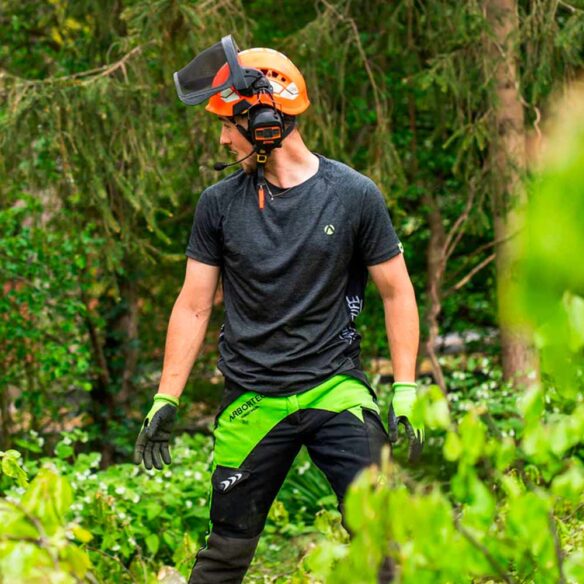 Arbortec AT4010 Breatheflex metsurinhousut (Design A, Class 1) on tehty kovaan ammattikäyttöön, kun moottorisahan kanssa pitää liikkua paljon ja tehdä töitä pitkiä päiviä. Housuissa on EN 381-5 Class 1 -ketjusahasuojaus (20 m/s) etupuolella, eli ne suojaavat juuri sieltä missä riski on suurin – ilman että housut tuntuvat raskailta tai jäykiltä. Breatheflex-mallin iso vahvuus on Climasphere-kangas, joka hengittää erinomaisesti mutta kestää kulutusta. Tämä tekee housuista mukavat myös lämpimällä säällä ja fyysisesti raskaassa työssä. Kevlar-vahvistukset haarassa ja lahkeissa lisäävät kestävyyttä, ja joustavat materiaalit antavat hyvän liikkumisvapauden esimerkiksi kiipeilyssä ja tarkassa sahaustyössä. AT4010-housut sopivat erityisesti metsureille, arboristeille, kiipeilijöille ja kiinteistönhoidon ammattilaisille, jotka arvostavat keveyttä, hengittävyyttä ja luotettavaa suojaa. Käytännölliset taskut, kestävät vetoketjut ja heijastavat yksityiskohdat tekevät housuista toimivat ja turvalliset vaihtelevissa työolosuhteissa.