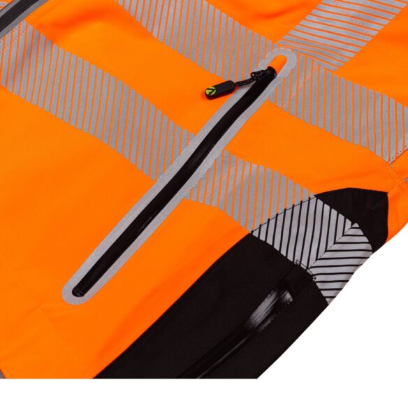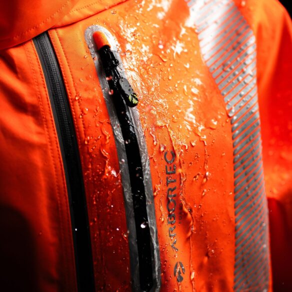 ATHV4420 on suunniteltu erityisesti arboristeille ja ammattilaisille, jotka työskentelevät ympäristöissä, joissa näkyvyys on kriittisen tärkeää. Huomiovärinen oranssi takki heijastavilla yksityiskohdilla täyttää rautatiealan RIS‑3279‑TOM Issue 19 ‑vaatimukset säilyttäen samalla perusmalli AT4420:n kaikki tekniset edut. Täyspitkä vedenpitävä vetoketju helpottaa pukemista ja ilmanvaihdon säätöä. Kaksi erillistä sivutaskua tarjoavat turvallisen säilytyksen työkaluille ja varusteille. Suuri säädettävä huppu istuu mukavasti kiipeilykypärän päälle ja muotoiltava lippa ohjaa sateen pois kasvoilta. Reilusti mitoitetut hihat, myrskyhihansuut, Lycra‑peukalolenkit ja kainalotuuletus pitävät käyttäjän kuivana, viileänä ja näkyvänä vaativissakin työtehtävissä.