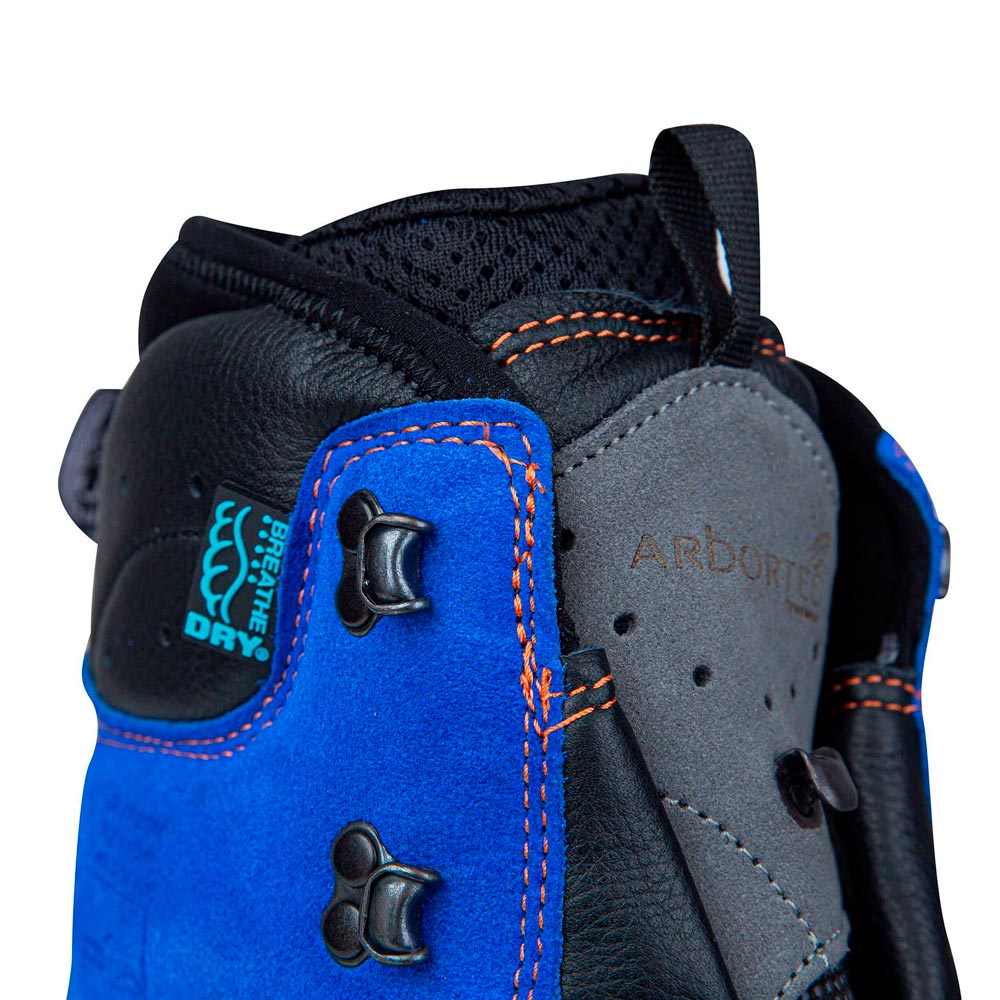 Arbortec Scafell Lite Chainsaw Boot Blue on korkealaatuinen ketjusahasaapas vaativaan ammattikäyttöön. Se on suunniteltu erityisesti metsätöihin, arboristeille sekä muihin työympäristöihin, joissa sahaustyö edellyttää luotettavaa jalkasuojausta. Saapas täyttää EN ISO 17249 Class 2 (24 m/s) -turvaluokituksen vaatimukset ja tarjoaa tehokkaan suojan ketjusahan terää vastaan mahdollisissa onnettomuus tilanteissa. Teräskärki sekä lävistystä ja iskuja kestävä väliöpohja suojaavat jalkaterää tehokkaasti ilman, että käyttömukavuudesta tarvitsee tinkiä. Kestävä premium-nahkainen yläosa yhdessä Vibram®-ulkopohjan kanssa takaa erinomaisen pidon ja vakauden niin maastossa kuin puiden juurella työskenneltäessä. BreatheDry®-kalvorakenne pitää jalat kuivina ja hengittävinä myös vaativissa sääolosuhteissa. 3 ZONE®-nauhoitusjärjestelmä ja i-fit®-istuvuus mahdollistavat nopean ja tarkan kiristyksen, tukevat nilkkaa tehokkaasti ja parantavat käyttömukavuutta pitkien työpäivien aikana. Saappaiden mukana toimitetaan lisäksi tekniset Scafell-sukat sekä varanauhat, jotka viimeistelevät kokonaisuuden ja lisäävät tuotteen käyttömukavuutta ja arvoa.