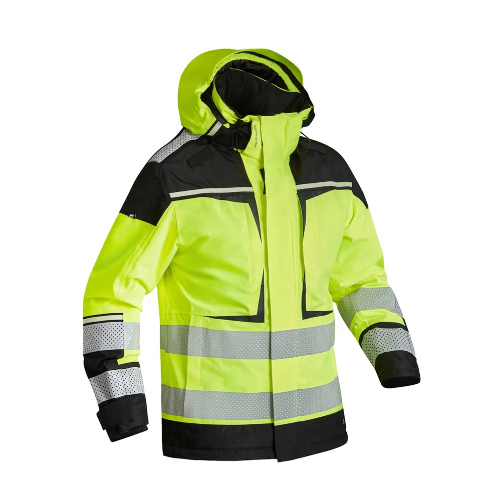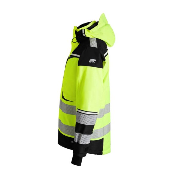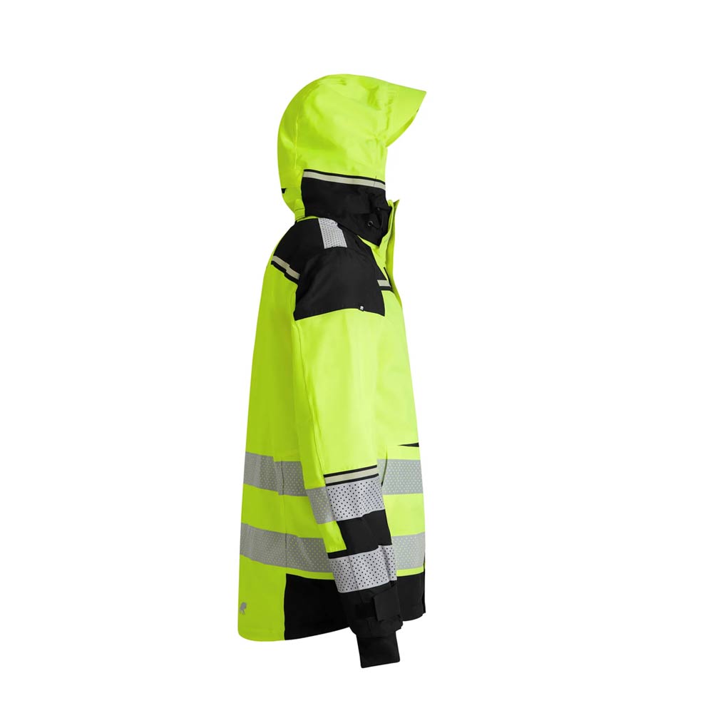 Käytännölliset rintataskut ja vetoketjulla suljettavat sivutaskut. Heijastimet ja Signal Lucence -teippi parantavat näkyvyyttä ja turvallisuutta. Vesipilari: 20 000 mm. Hengittävyys: 20 000/m2/24h.