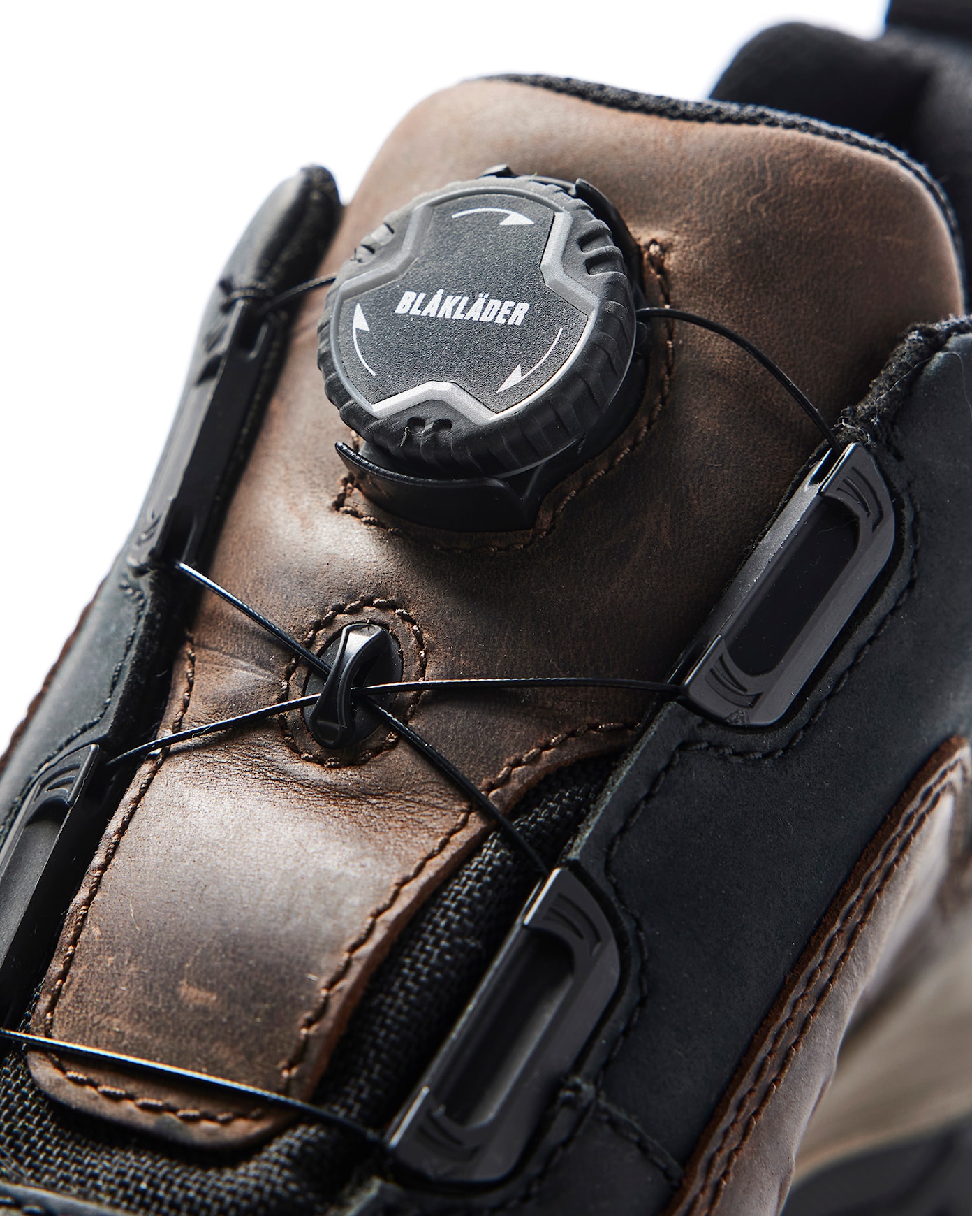 Korkealaatuiset nahkakengät vedenpitävällä kalvolla. Komposiitista valmistettu varvassuoja TPU-vahvistetulla varvasosalla. Pehmeä ja joustava naulaanastumissuoja, joka läpäisee uuden vaativan standardin pienten 3mm naulojen suhteen. Nitriilikuminen kitkapohja tarjoaa hyvän pidon myös jäällä ja lumella. Kengän pohjallinen, joka on anatomisesti suunniteltu parhaan mukavuuden takaamiseksi, on pehmeää PU-materiaalia, joka sitoo kosteutta. Kätevä Freelock -kiinnitys helpottaa kenkien pukemista ja riisumista. Kengät soveltuvat erityisesti rakennus-, kuljetus-, ylläpito, korjaus- ja huoltoalalle.