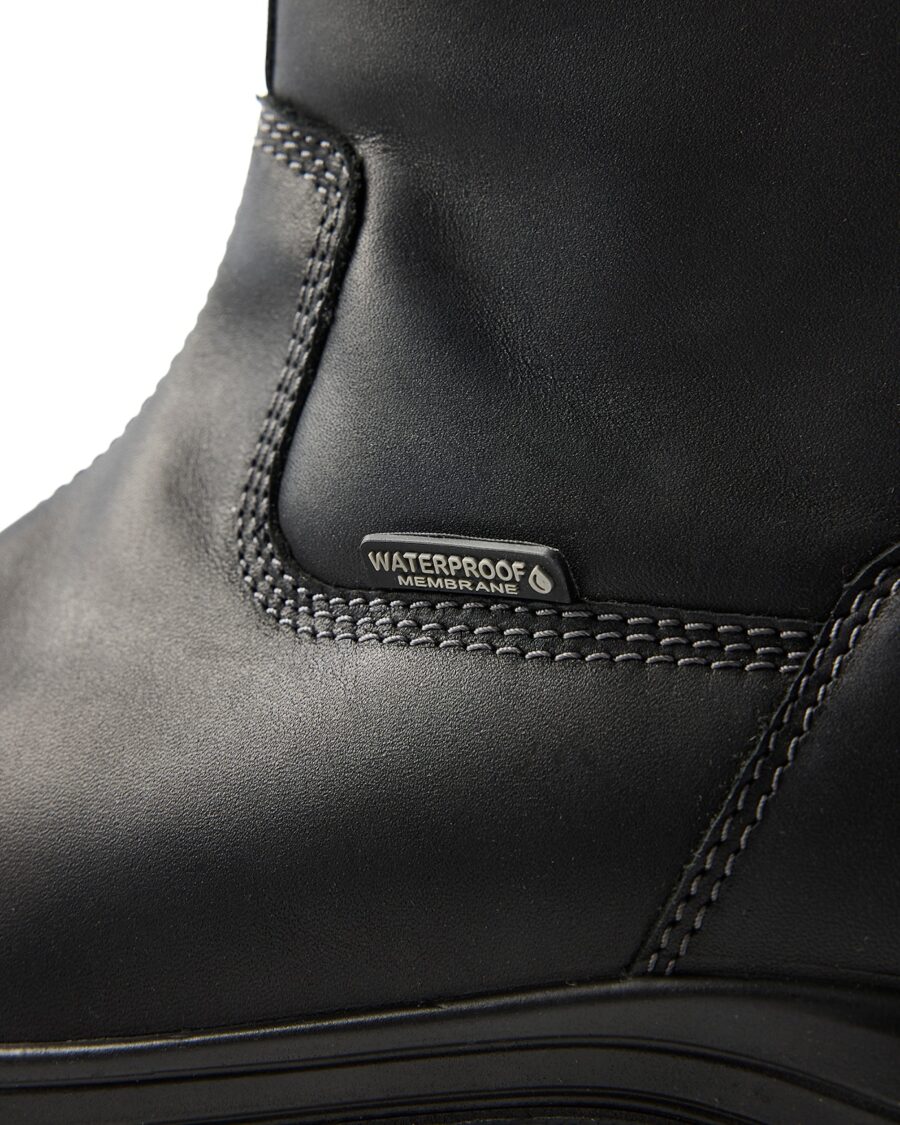 - Vettähylkivä ja kestävä öljykäsitelty nubukkinahkainen pintamateriaali yhdessä kalvon kanssa tekee turvakengistä vedenpitävät