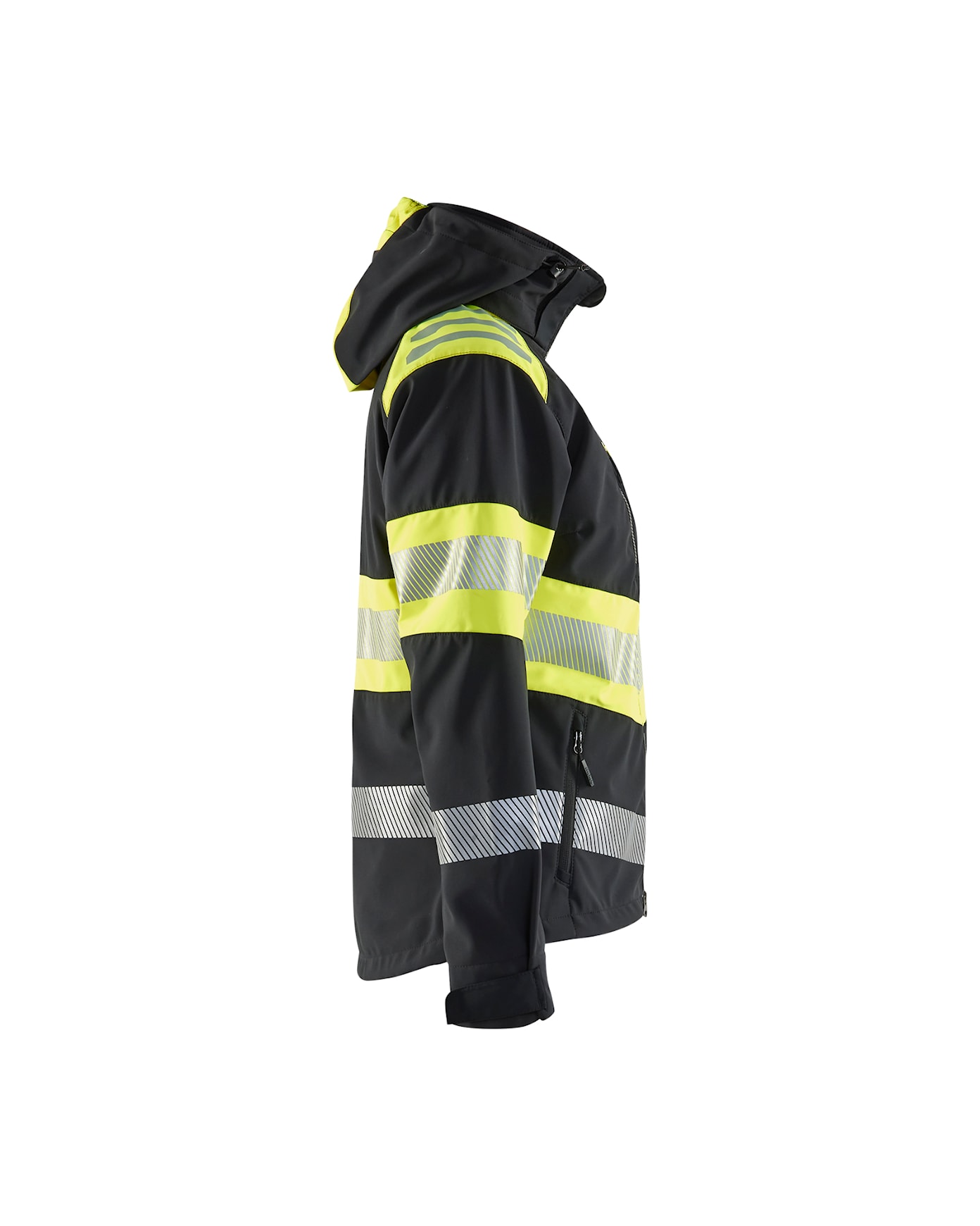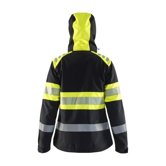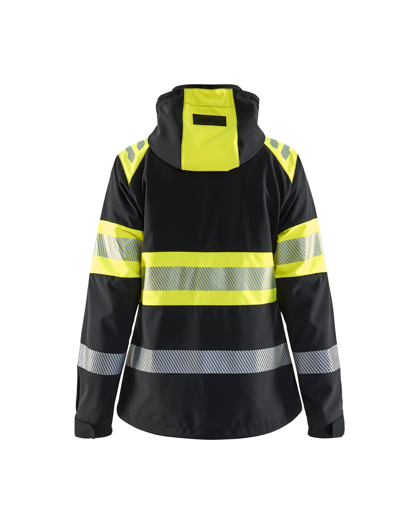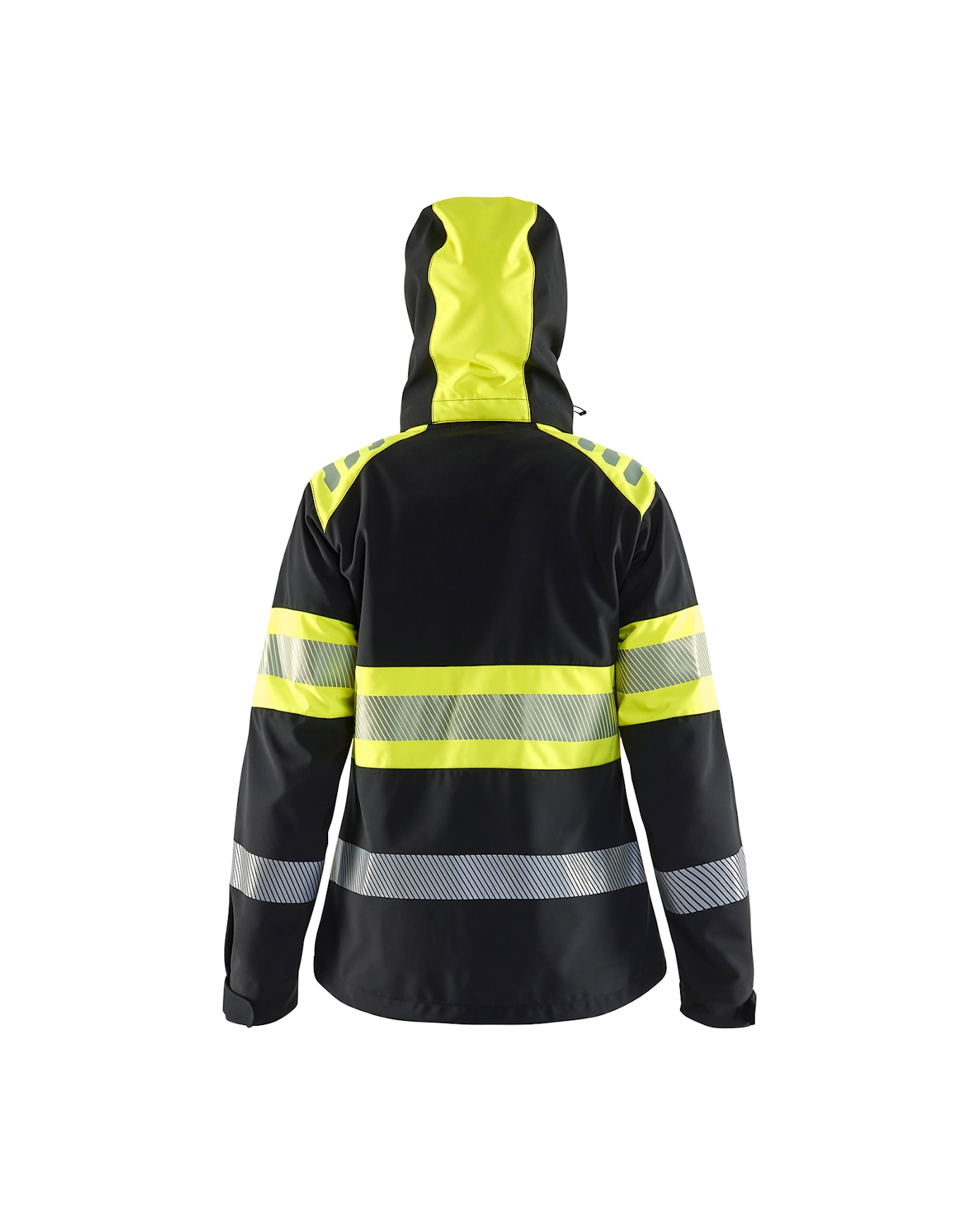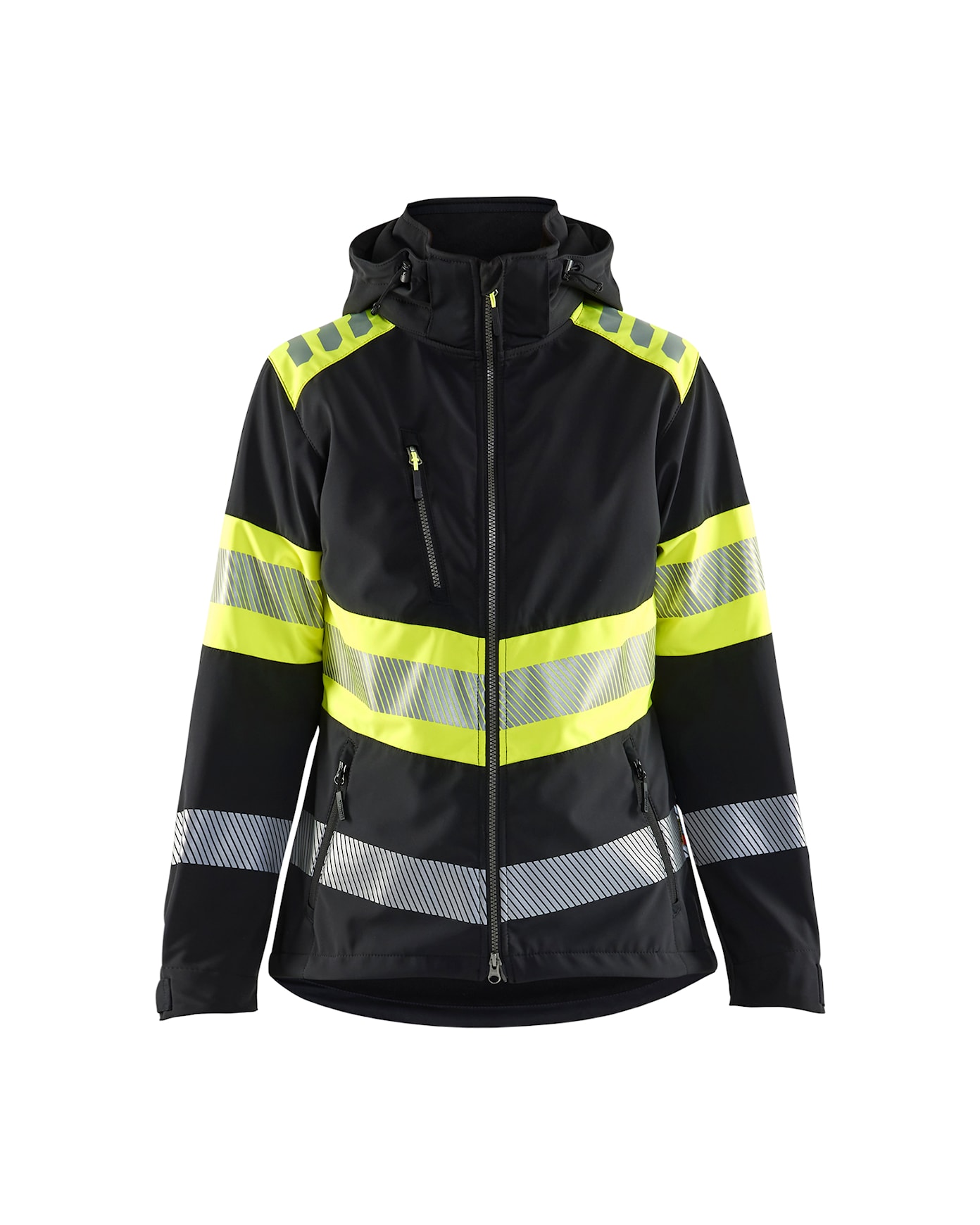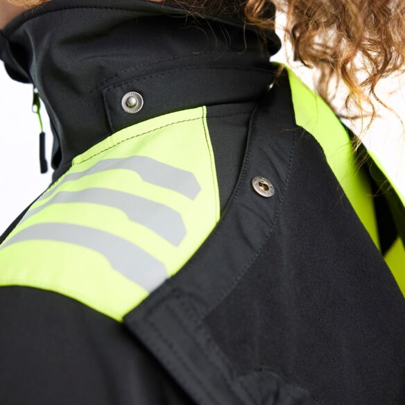 Kevyt naisten highvis softshell-takki. Materiaali on erittäin pehmeä, joustava ja mukava. Takissa on rintatasku ja kaksisuuntainen vetoketju edessä. Takki on tuulen- ja vedenpitävä sekä hengittävä. Irrotettava huppu.