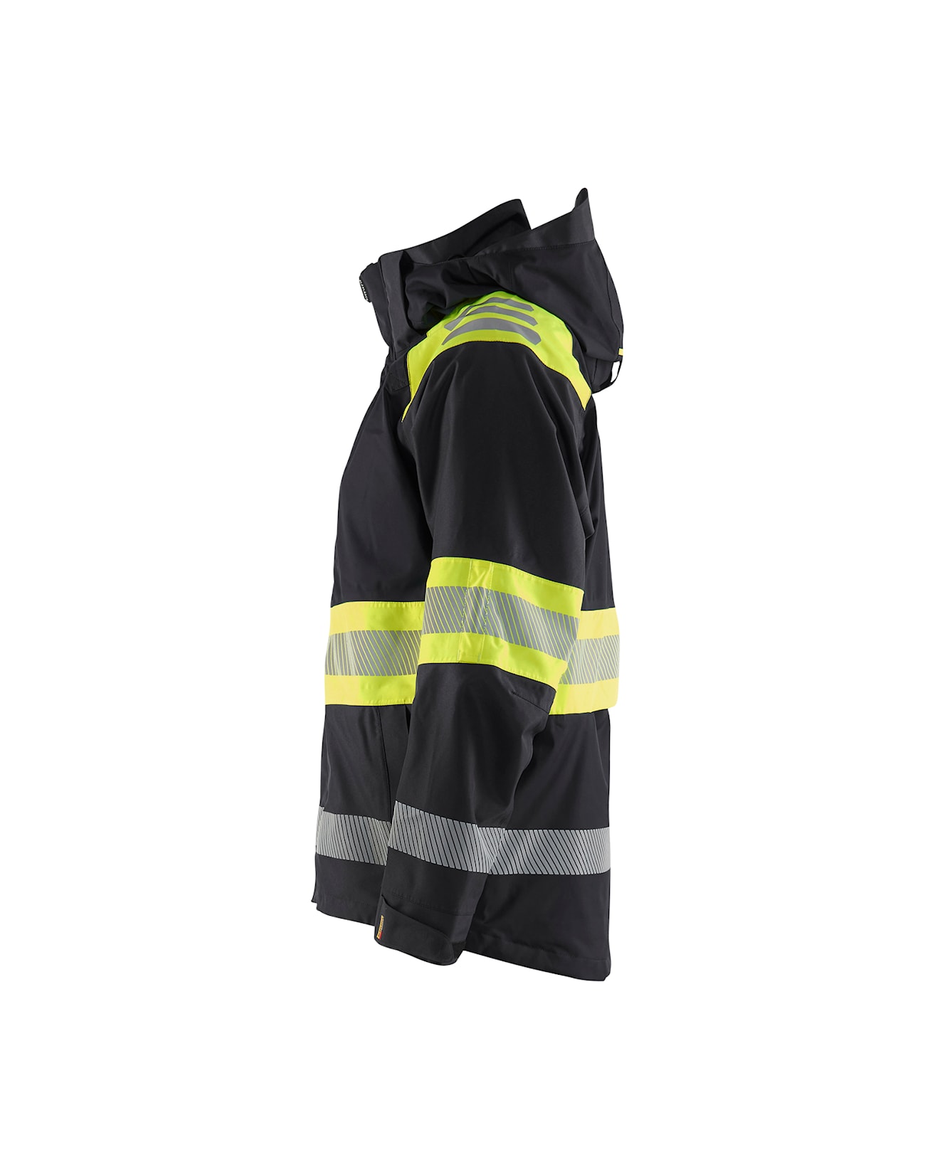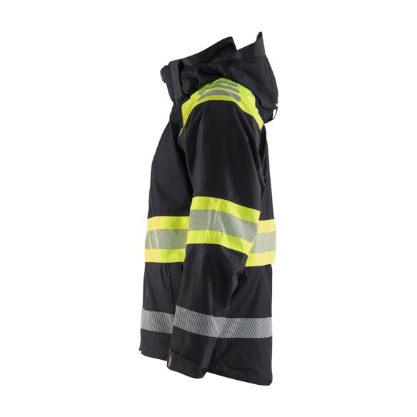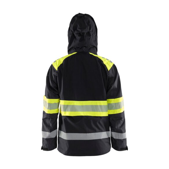 - Tuulen- ja vedenpitävä, hengittävä materiaali. 15000 mm/4 000 g/m²/24 h. Fluoresoivat värit ovat EN ISO 20471 -standardin mukaisia (Näkyvä varoitusvaatetus ammattikäyttöön). Materiaali on EN 343 -standardin luokan 3/3 -mukainen (Suojaus sateelta).