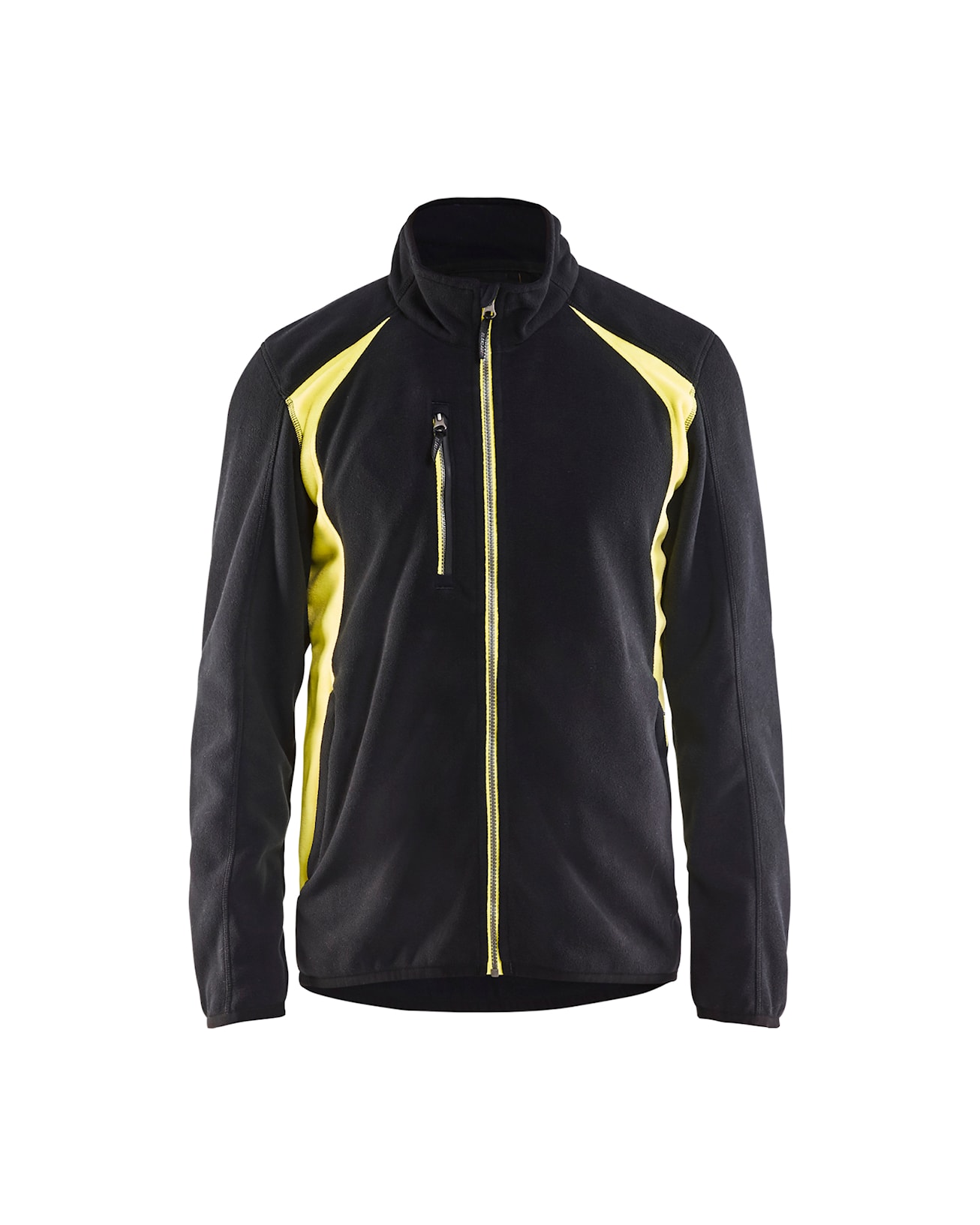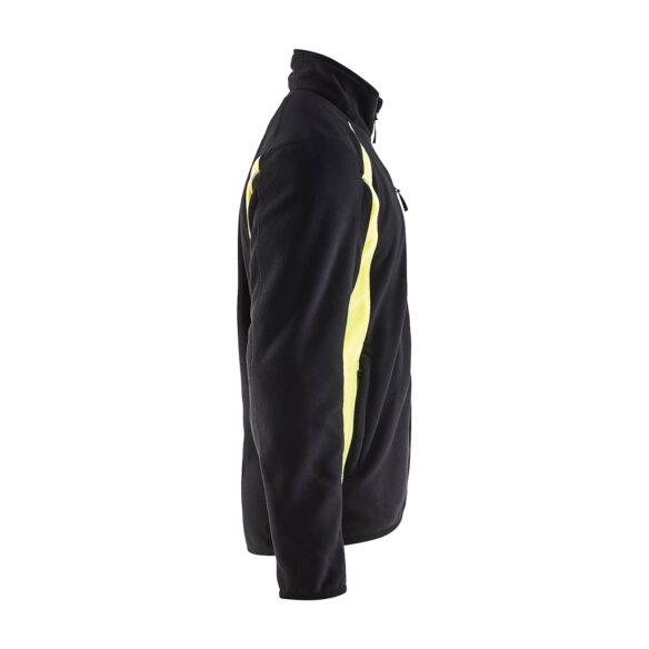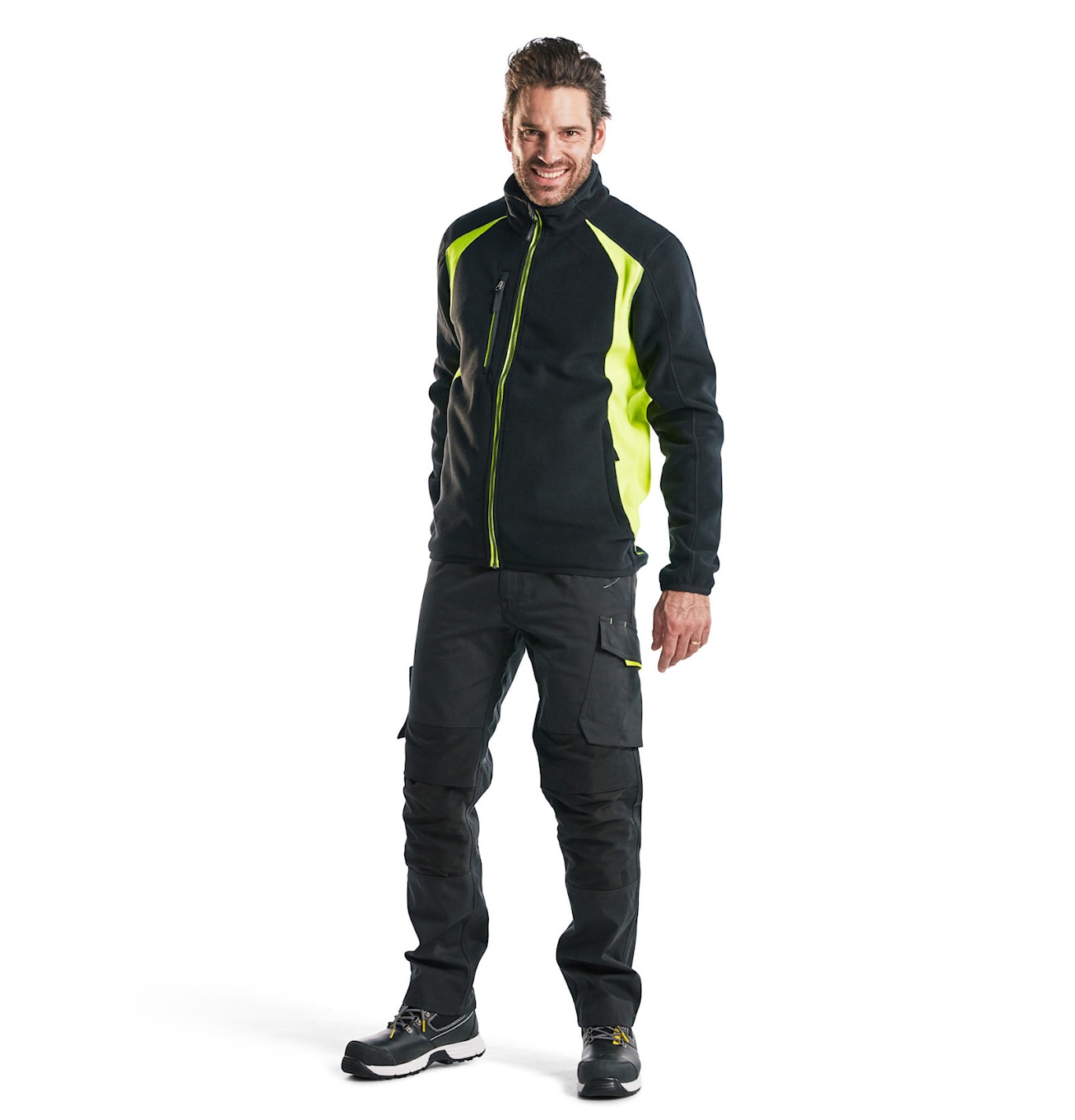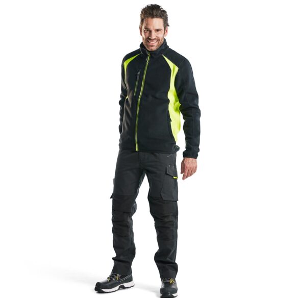 Kaksivärinen fleecepusero, jonka kangas on käsitelty nukkaantumista vastaan. Kaksi isoa vetoketjullista etutaskua, pidennetty selkäosa, heijastavat vetoketjut edessä sekä rintataskuissa.