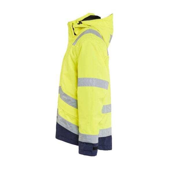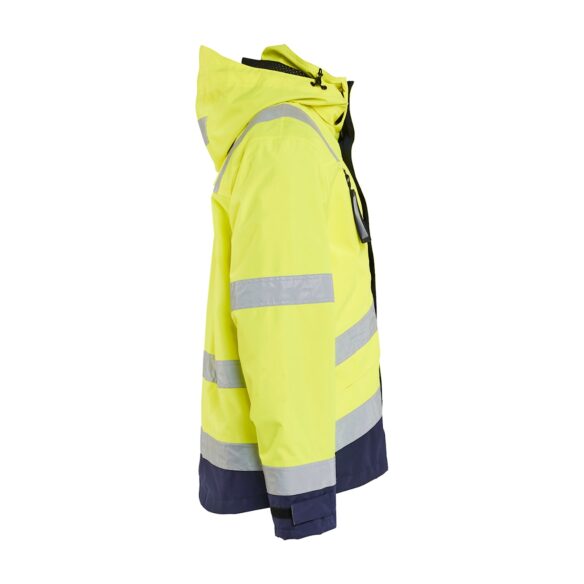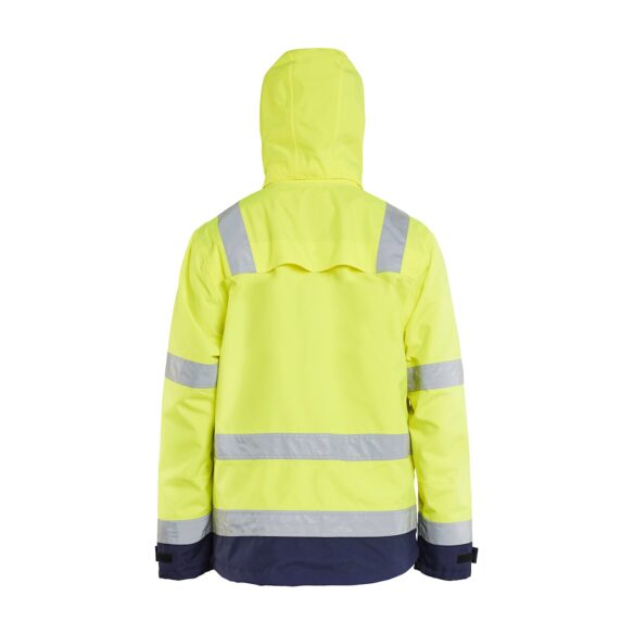 Hengittävä, tuulen- ja vedenpitävä kuoritakki teipatuilla saumoilla. Täydellinen valinta kylmää, sadetta ja tuulta vastaan. Materiaali on kevyt ja helppohoitoinen ja se sopii erinomaisesti työhön, jossa takilta vaaditaan paljon. Sertifioitu EN ISO 20471 luokka 3, koot XS-S luokka 2 ja EN 343.
