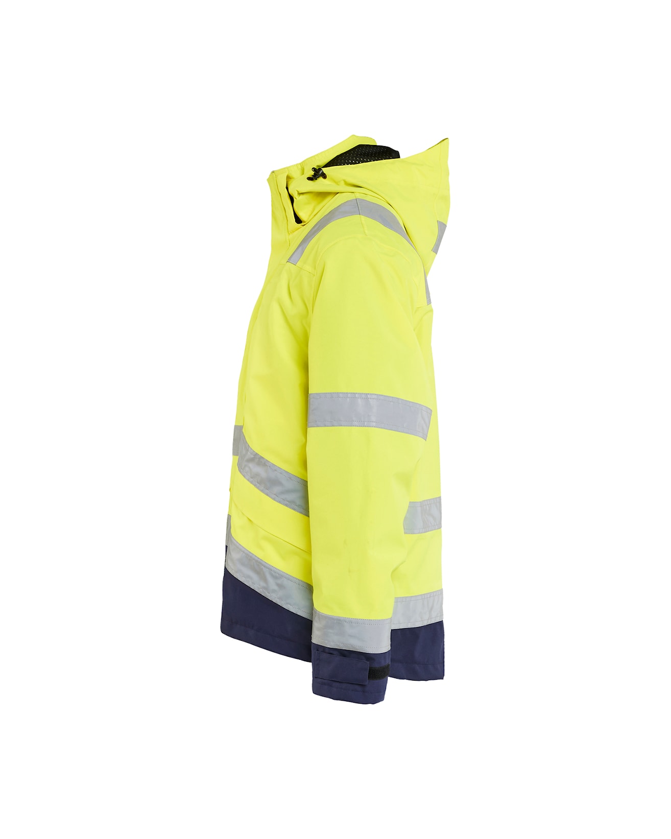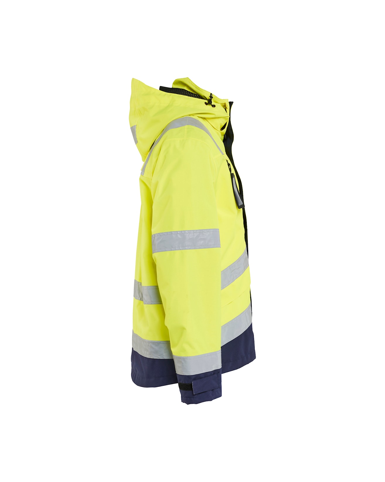 - Tuulen- ja vedenpitävä, hengittävä materiaali. 15000 mm/4 000 g/m²/24 h. Fluoresoivat värit ovat EN ISO 20471 -standardin mukaisia (Näkyvä varoitusvaatetus ammattikäyttöön). Materiaali on EN 343 -standardin luokan 3/3 -mukainen (Suojaus sateelta).