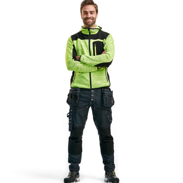 Neulottu takki hupulla, nuorekkaalla ilmeellä ja mukavan tuntuisella materiaalilla. Kontrastivärinen vetoketju ja softshell -vahvistukset kulutusalttiissa kohdissa lisäämässä kestävyyttä. Sopii erinomaisesti niin työhön kuin vapaa-aikaankin.