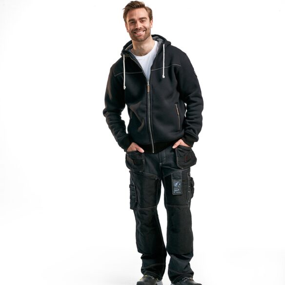 Huppari pehmeällä pilévuorella. Tukeva vetoketju edessä. Vetoketjulliset etutaskut.