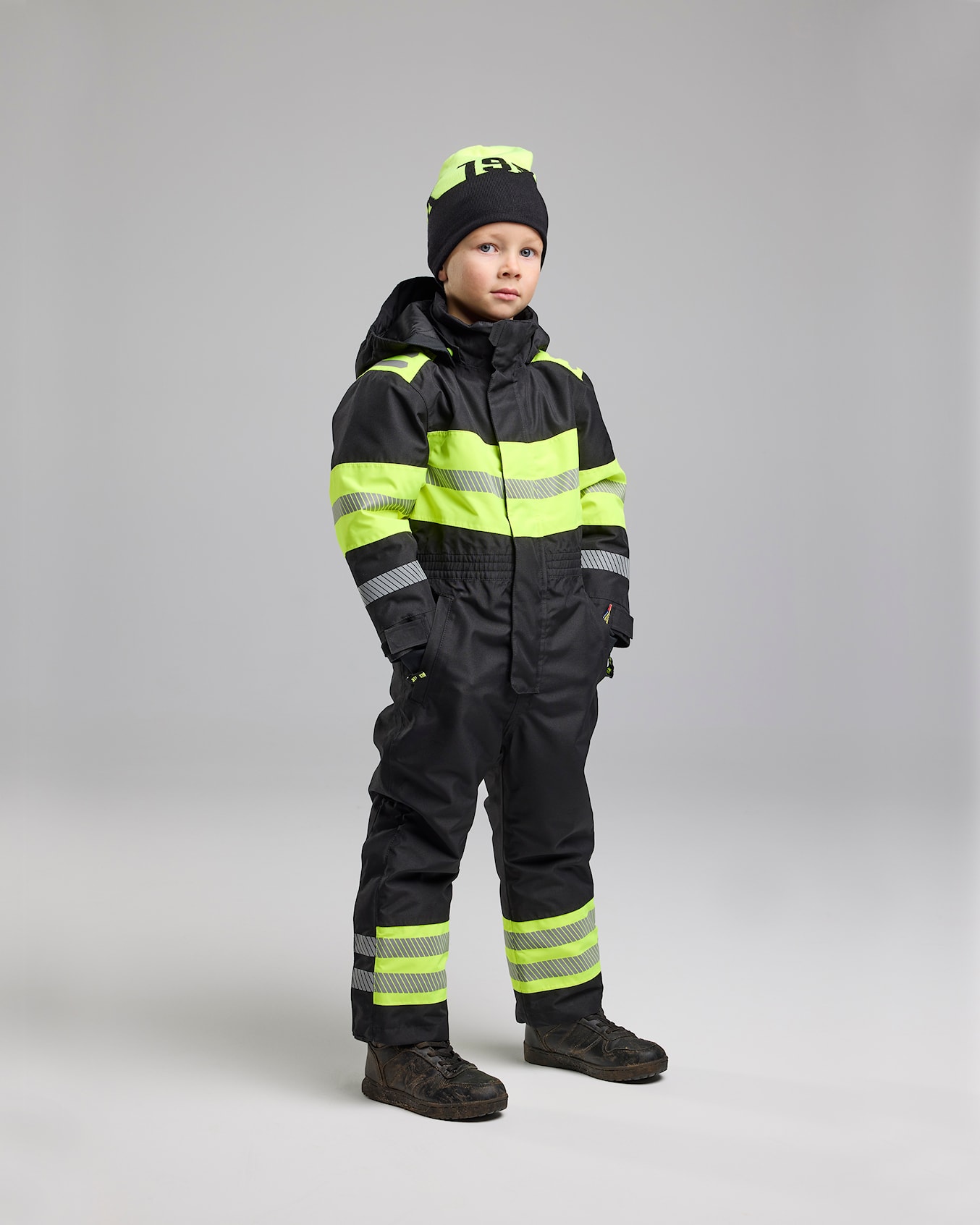 Lämmin ja mukava talvihaalari lapsille. Haalari on valmistettu kestävästä ja vedenpitävästä materiaalista, jossa on teipatut saumat kestämään ulkoilmaelämän haasteet. Huomioväriset yksityiskohdat ja heijastimet tarjoavat erinomaisen näkyvyyden silloin, kun sitä tarvitaan eniten. Haalarissa on tikattu vuori, joka tuo kaivattua lämpöä kylmissä olosuhteissa. Irrotettava huppu nepparikiinnityksellä, säädettävät hihansuut ja joustavat jalkalenkit, jotka pitävät lahkeet paikallaan.