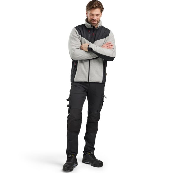 Neulottu takki nuorekkaalla ilmeellä ja mukavan tuntuisella fleecemateriaalilla. Kaksisuuntainen vetoketju edessä. Materiaali on kolmiulotteista fleeceä. Harjattu materiaali antaa takille makean ilmeen 3D-kuviolla ja on joustava, mukavan tuntuinen ja lämmin. Softshell-materiaali hihoissa, hartioilla ja selän alaosassa lisää kestävyyttä. Kainaloissa ei ole softshelliä, jotta hengittävyys olisi parempi. Takissa on paljon tilaa painatuksille ja sopii niin työhön kuin vapaa-ajalle.