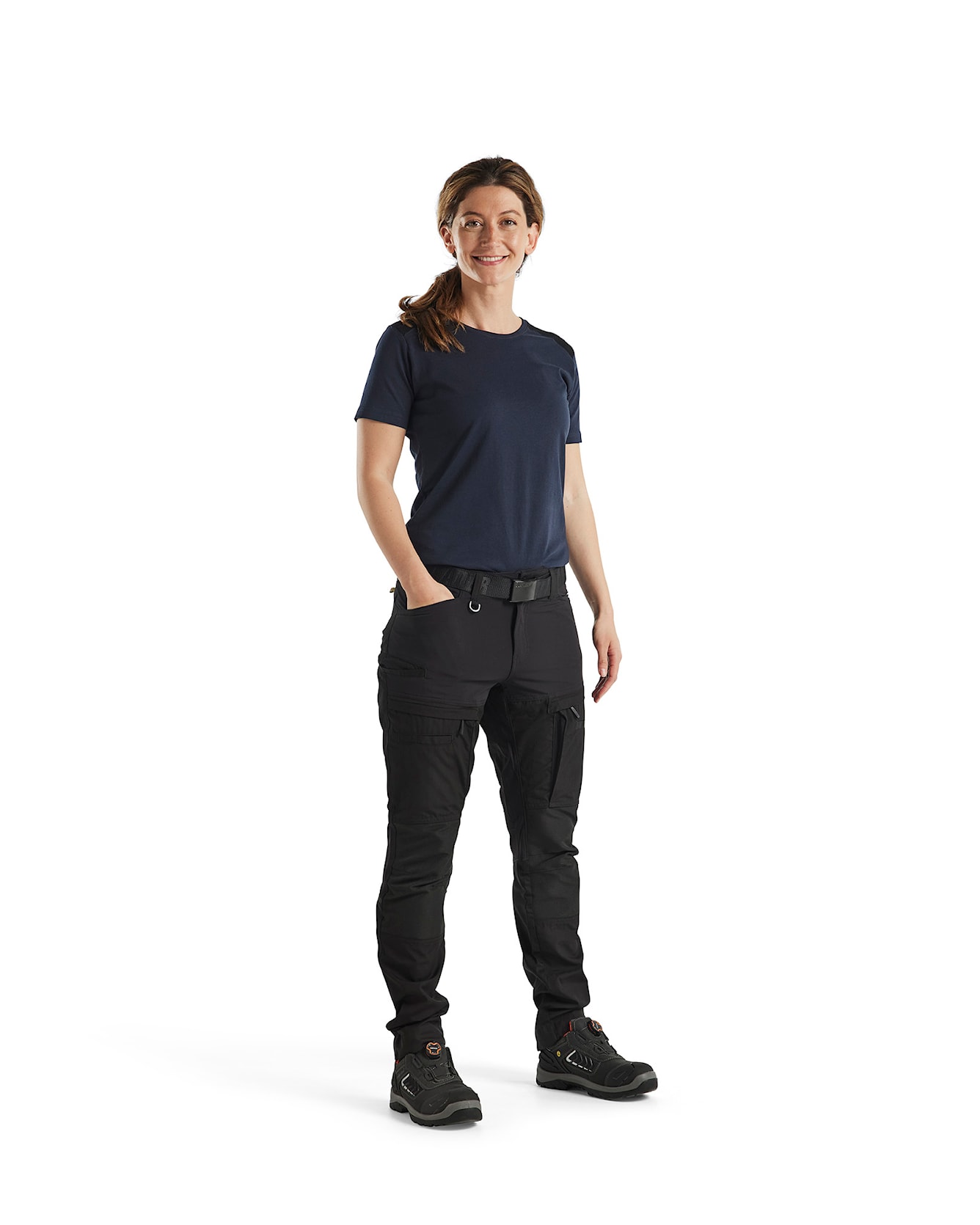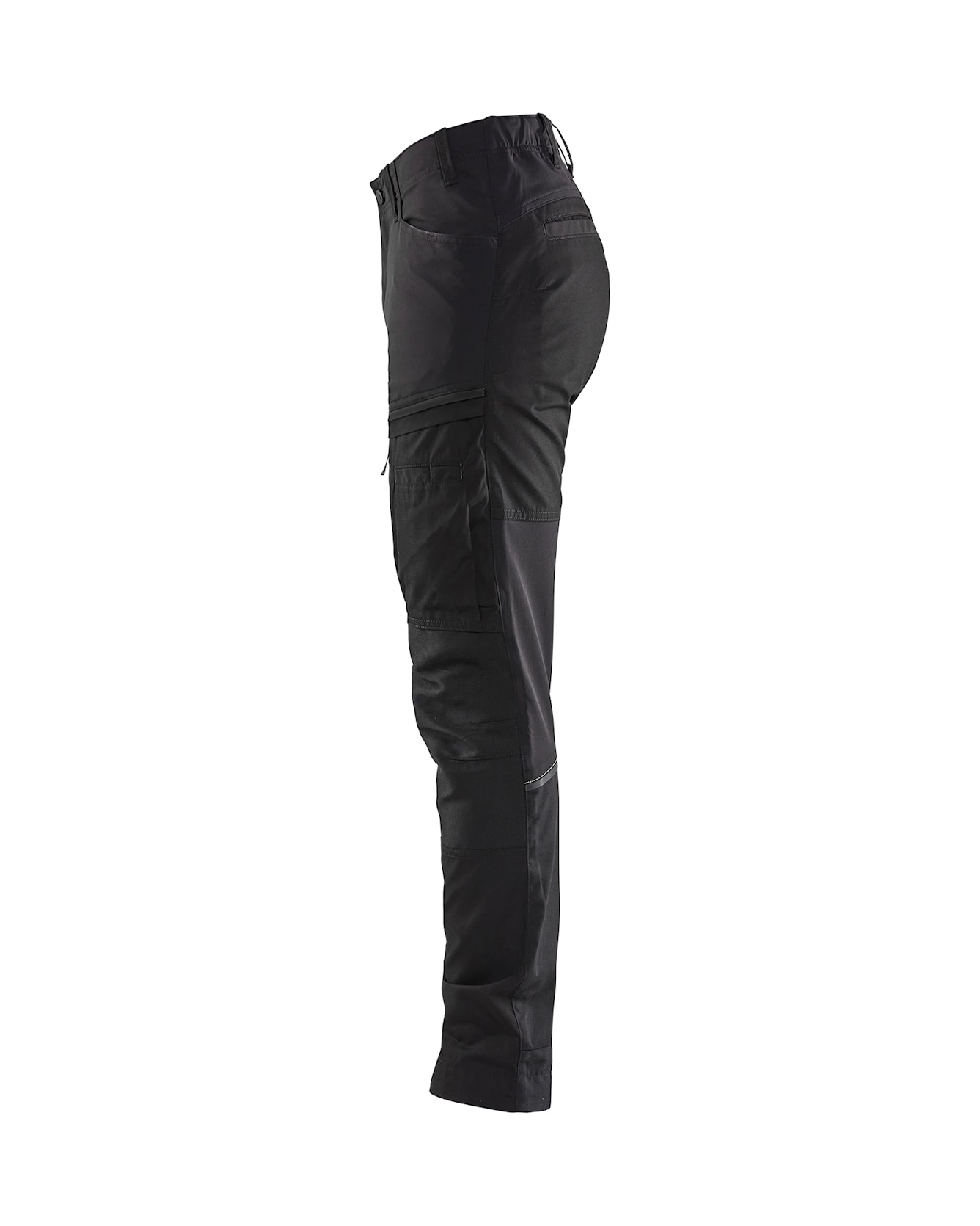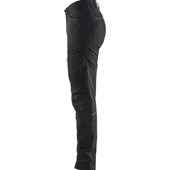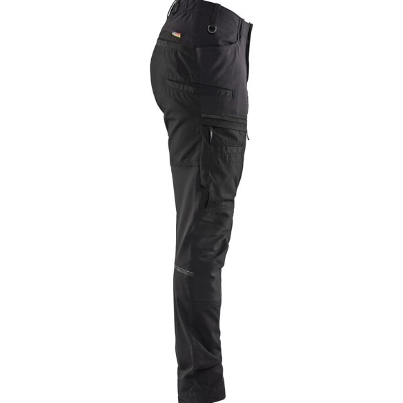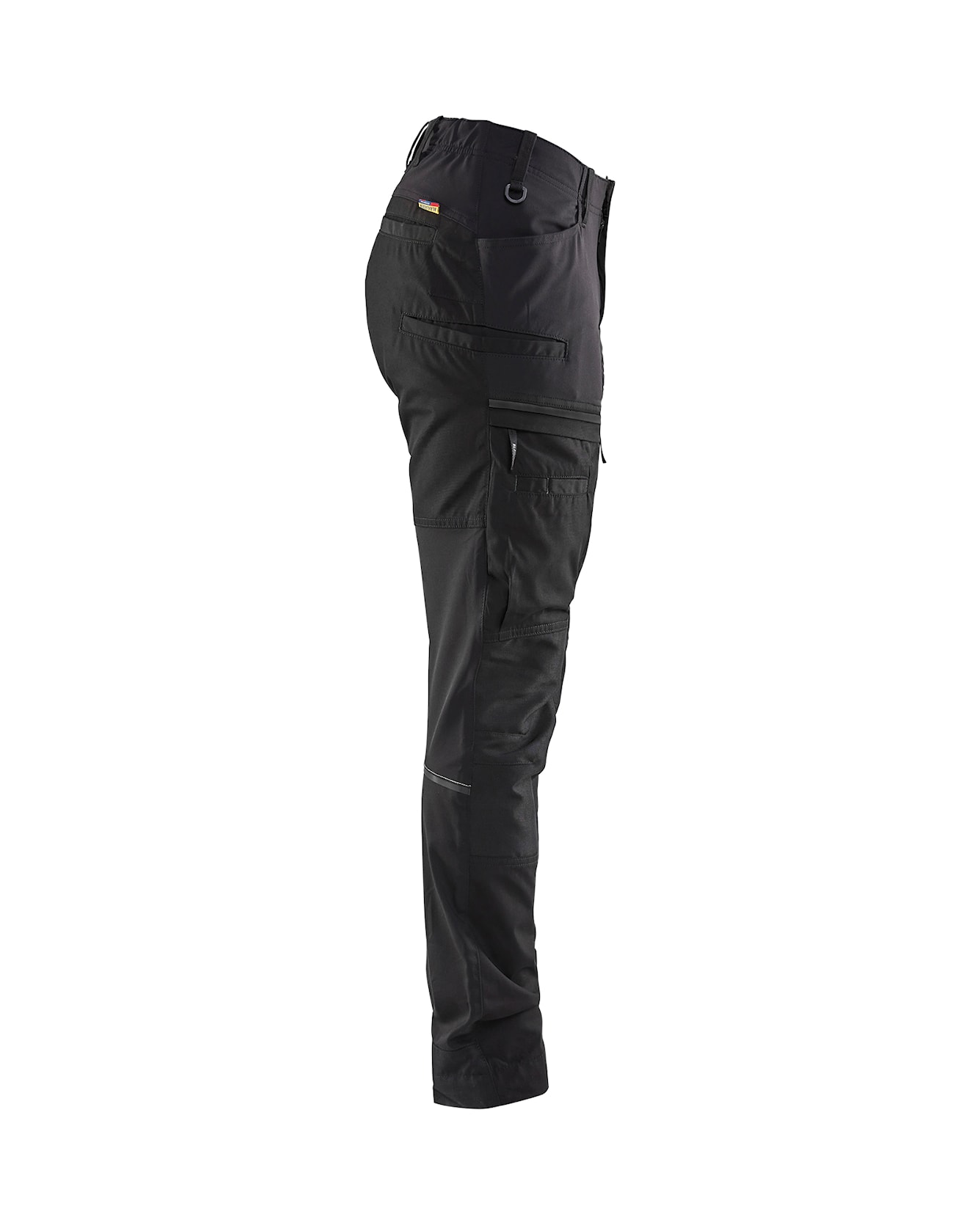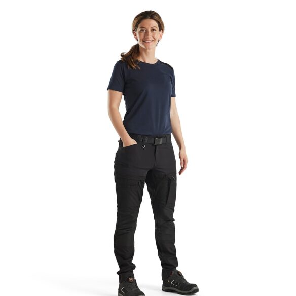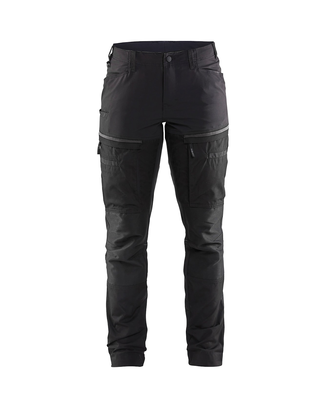 Mukavat ja kestävät housut, joissa on resori vyötäröllä sekä joustavia kangasosioita liikkuvuuden parantamiseksi. Kapeampi istuvuus. CORDURA®-stretch vahvistetut polvet. Pidennysmahdollisuus lahkeissa. Huolellisesti suunnitellut yksityiskohdat, kuten useat käytännölliset taskut, kaksi vetoketjullista paljetaskua reisien päällä sekä isompi tasku esimerkiksi asiakirjoille. Kontrastiväriä saumoissa ja vetoketjuissa sekä heijastavia yksityiskohtia parantamaan näkyvyyttä.