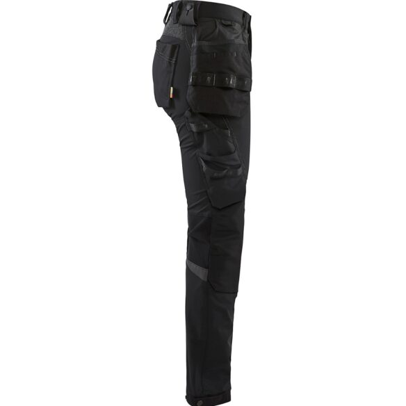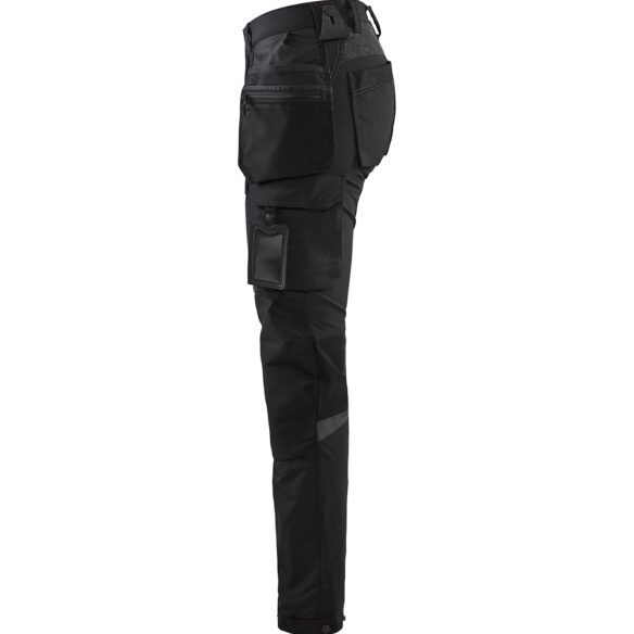 Kevyet ja erittäin mukavat naisten riipputaskuhousut neljään suuntaan joustavalla stretchillä. Kapeampi ja hieman tiukempi malli, joka miellyttää monia käyttäjiä. Joustava vyötärö antaa lisämukavuutta. Joustavat polvisuojataskut, riipputaskut, joista toinen vetoketjulla, palkeelliset takataskut, mittatasku ja vasaralenkki. Pehmeä ja joustava verkkomateriaali polvitaipeissa tuo hyvää ilmanvaihtoa ja takaosasta vahvistetut lahkeensuut kestävät kulutusta.