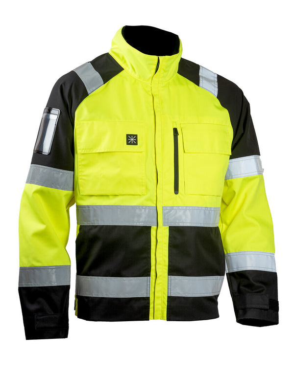 Näkyvyysluokan 2 turvatakki vettä ja likaa hylkivästä kierrätysmateriaalista. Helma ja hihansuut ovat tarroilla säädettävissä käyttäjälle sopivaksi. Raglanhihamalli ja mietityt yksityiskohdat tekevät takista istuvan ja sopivan erilaisiin työtehtäviin.