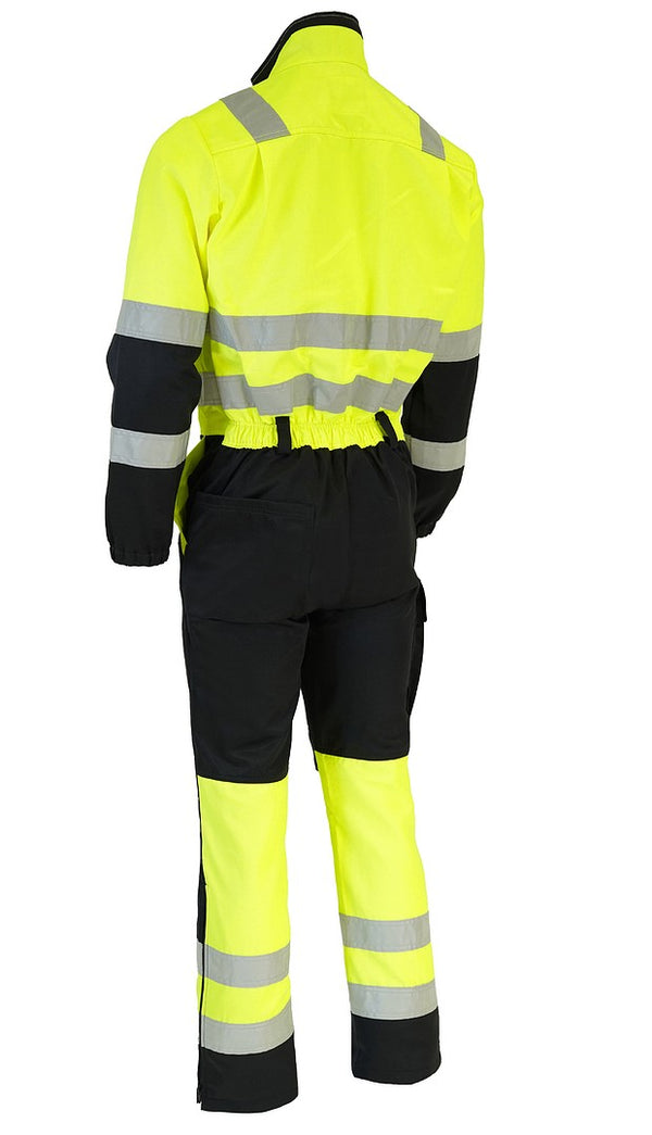 Huomiovärinen työhaalari, joka kestää kovempaakin käyttöä. Käyttömukavuutta lisää tilaa antavat laskokset selässä ja haarakiila. Myös selkäosion pituutta on lisätty, jotta haalari ei kiristä ääriasennoissa työskennellessä. Runsas taskutila ja polvisuojataskut lisäävät tämän haalarin monikäyttöisyyttä.