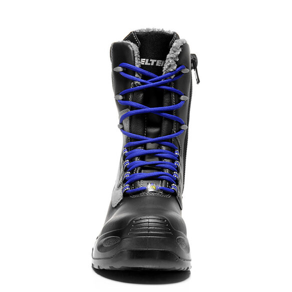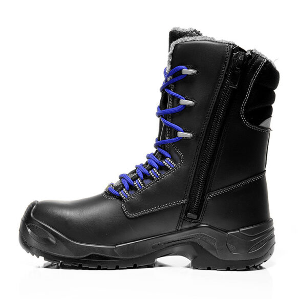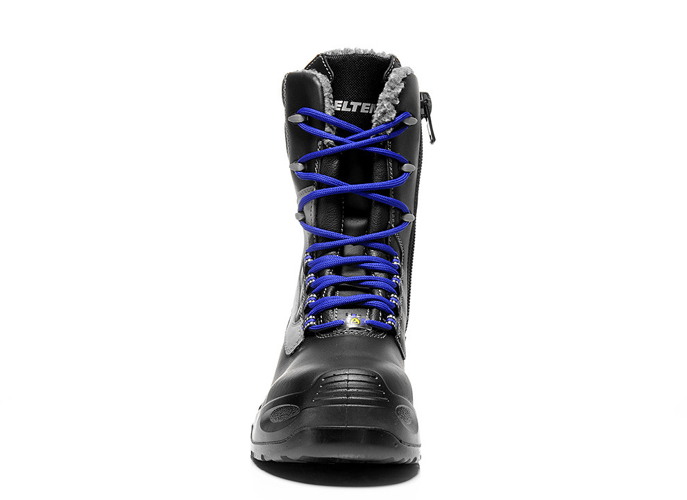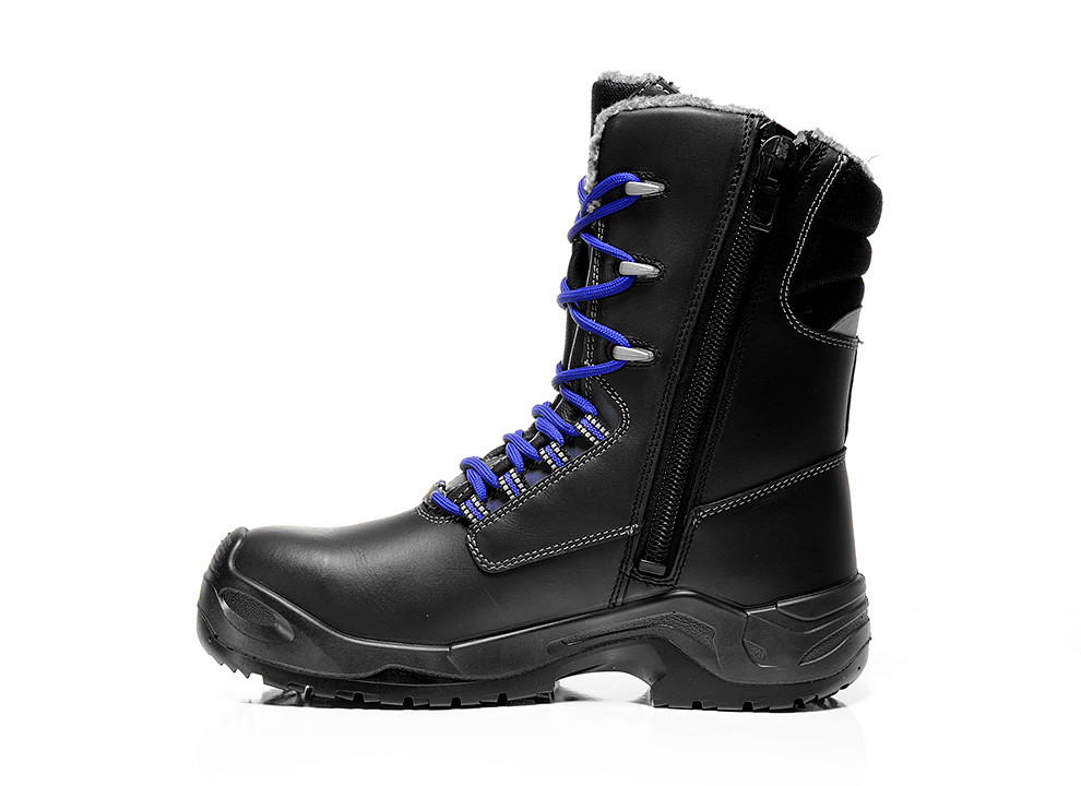 Nämä S3-luokan talviturvakengät on suunniteltu vaativaan ammattikäyttöön, jossa tarvitaan lämpöä, suojaa ja helppoa käytettävyyttä. Päällinen yhdistää naudan nahan, hydrofobisoidun nupukkinahan ja vettähylkivän tekstiilimateriaalin, tarjoten kestävyyttä ja suojaa kosteutta vastaan kylmissä ja vaihtelevissa olosuhteissa. Lämmin vuori sekä täyspitkä, lämmin fleece-ESD-pohjallinen pitävät jalat miellyttävän lämpiminä pitkien työpäivien aikana. Täysin pehmustettu paljekieli estää lian, lumen ja kosteuden pääsyn kengän sisään ja parantaa istuvuutta. Turvallisuus on huippuluokkaa: metalliton, naulanläpäisyn kestävä välipohja ja kevyt komposiittinen varvassuoja tarjoavat luotettavan suojan ilman metalliosia. PU-kärkivahvike lisää kengän kestävyyttä erityisesti raskaassa käytössä. PU/PU SAFEGUARD -ulkopohja tarjoaa erinomaisen pidon liukkailla alustoilla (SRC) sekä hyvän iskunvaimennuksen. Kylmäeristys (CI) tekee kengistä erinomaisen valinnan ulkotyöhön ja kylmiin työympäristöihin. Nauhojen ja vetoketjun yhdistelmä helpottaa pukemista ja riisumista, ja extra-leveä lesti tarjoaa lisämukavuutta leveämmälle jalalle. Metalliton rakenne soveltuu hyvin kohteisiin, joissa metallittomuus on vaatimuksena. Kengät täyttävät EN ISO 20345 S3 CI SRC -standardin ja soveltuvat erinomaisesti rakennus-, teollisuus-, huolto- ja logistiikkatyöhön sekä ulkokäyttöön talviolosuhteissa.