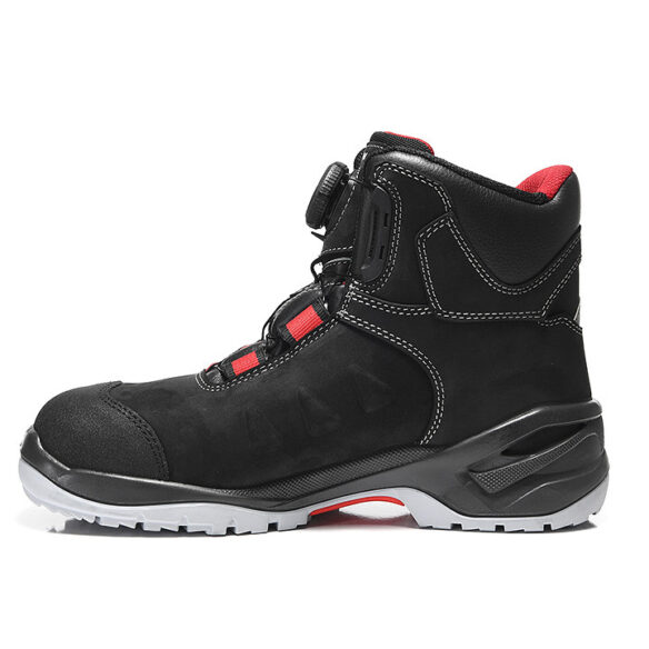 Nämä EN ISO 20345:2022 S3S -luokan turvakengät on suunniteltu vaativaan ammattikäyttöön, jossa korostuvat turvallisuus, ergonomia ja käyttömukavuus. Päällinen on valmistettu kestävästä naudannahasta, joka hylkii kosteutta ja kestää päivittäistä kulutusta. Hengittävä tekstiilivuori varmistaa mukavuuden ja pitää jalat kuivina pitkän työpäivän aikana. Täysin pehmustettu paljekieli lisää mukavuutta ja tukee jalkaa. Puoliksi ortopedinen ESD-sisäpohja vähentää jalkojen rasitusta ja tarjoaa ergonomisen tuen. Turvallisuudesta huolehtivat teräksinen varvassuoja ja kulutusta kestävä kärkivahvike, jotka suojaavat tehokkaasti iskuilta ja kulumiselta. Metalliton, naulanläpäisyn kestävä välipohja lisää jalkaturvallisuutta. TPU/PU BIOMEX DYNAMICS -ulkopohja tarjoaa hyvän pidon liukkailla alustoilla (SR), öljynkestävyyden (FO) ja vakaan askelluksen vaihtelevissa työympäristöissä. BOA® Fit System mahdollistaa nopean ja tarkan kiristyksen yhdellä kädellä, mikä parantaa käyttömukavuutta ja istuvuutta. Erinomainen valinta teollisuuteen, varastoihin, logistiikkaan, rakennus- ja huoltotöihin, joissa tarvitaan kevyt, ergonominen ja turvallinen turvakenkä.