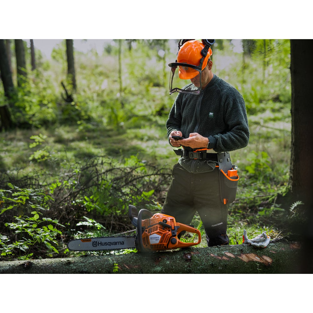 Husqvarna 450X on maanomistajien käyttöön tarkoitettu moottorisaha, joka on suunniteltu vankkaa suorituskykyä vaativiin töihin, kuten metsänhoitoon. Siinä yhdistyvät tehokkuus, parannettu kestävyys ja helppokäyttöisyys. Optimoidulla 2,5 kW:n X-Torq® moottorilla varustettu saha on tehokas ja helppokäyttöinen, ja siinä on erinomainen teho-painosuhde. AutoTune™ varmistaa, että 450X-moottorisahan käynnistäminen ei vaadi paljoa ja että moottorin asetukset säädetään automaattisesti optimaalisen suorituskyvyn saavuttamiseksi kaikissa olosuhteissa. Lisäksi Smart Start® -toiminnon ansiosta käynnistäminen käy vähällä vaivalla. Värilliset kaatomerkit, lukittu terämutteri ja muut lisäominaisuudet parantavat sahauskokemusta entisestään. Husqvarna Connect -liitettävyyden ansiosta pääset tarkastelemaan digitaalisia tuotetietoja ja käyttötietoja helposti.