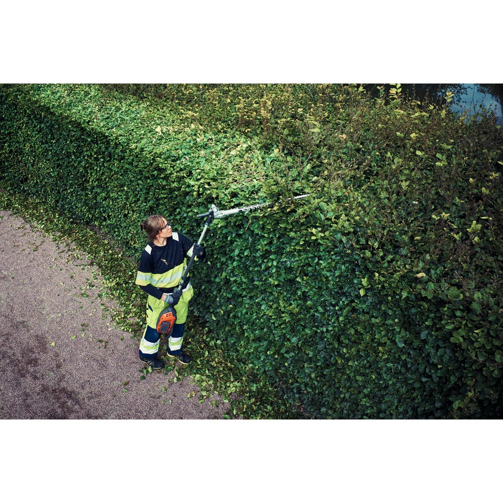 Husqvarna 525iHE3 on ammattikäyttöön suunniteltu tehokas akkukäyttöinen pensasleikkuri, jonka ulottuma on jopa 3 metriä. 65 cm:n kääntyvä leikkuupää, joka on varustettu kolminkertaisesti hiotuilla terillä tarjoaa suuren leikkuunopeuden ja korkean tuottavuuden leikatessa niin korkeita, leveitä kuin mataliakin pensasaitoja. Kääntyvän leikkuupään ansiosta leikkuria on helppo kuljettaa ja säilyttää. Leikkurin tasapainoinen muotoilu, alhainen tärinätaso, ergonomiset kahvat ja helppokäyttöinen näppäimistö mahdollistavat mukavan käytön pitkien ja vaativien työpäivien aikana. IPX4-standardi varmistaa, että leikkuria voi käyttää säässä kuin säässä ja aktiivinen akun jäähdytysjärjestelmä takaa pitkän käyttöajan. Integroitu liitettävyys mahdollistaa helpon yhteyden Husqvarnan digitaalisiin palveluihin, kuten esim. Husqvarna Fleet Services™. Akku ja laturi myydään erikseen.