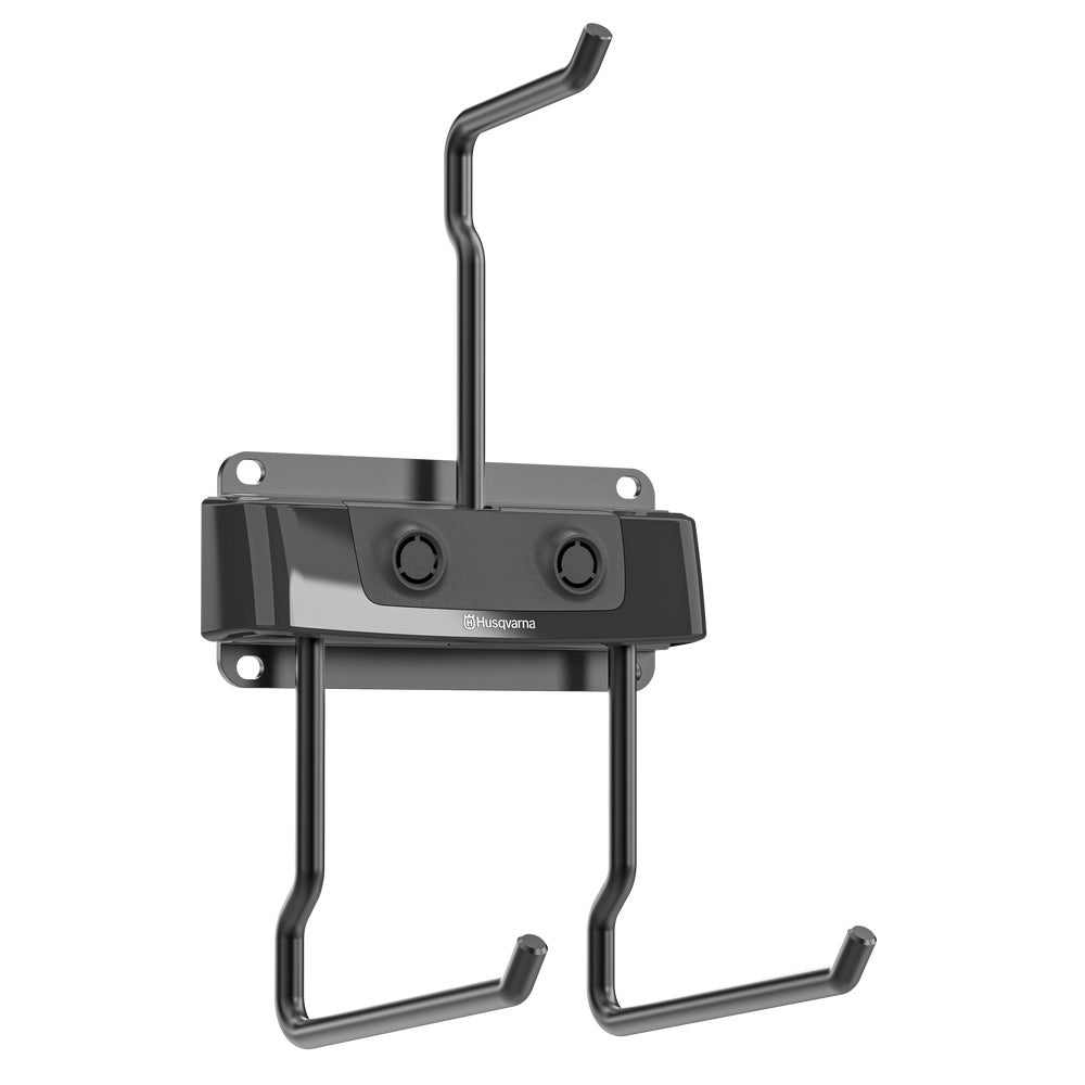Husqvarna Automower® -säilytyskoukku on tilaa säästävä ratkaisu, joka tekee robottiruohonleikkurisi säilyttämisestä helppoa talvikaudella. Se vie vähän tilaa, voidaan kiinnittää suoraan seinään ja sopii myös Husqvarna-säilytyskiskoon.