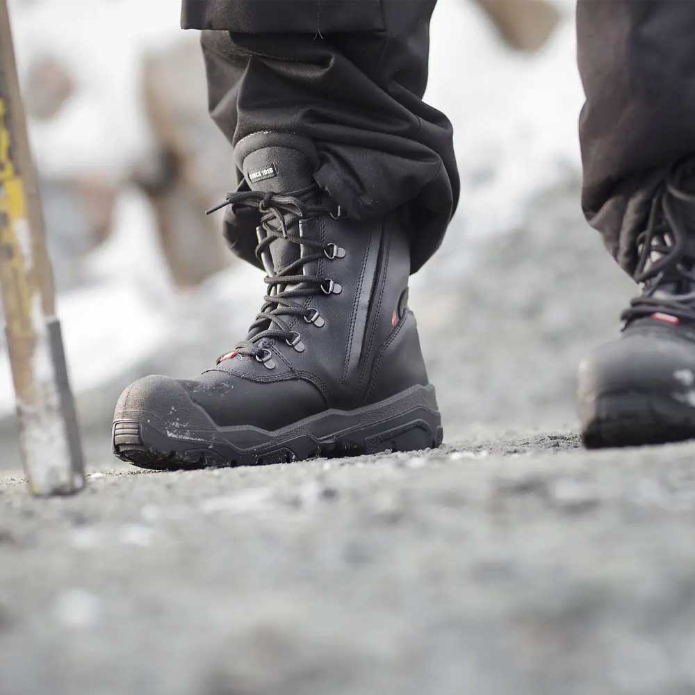 Ensiluokkainen turvamaihari, jossa antistaattiset ominaisuudet ja korkein suojaustaso (S3), ulkotöihin. Kestävä PU-pinnoitettu nahkapäällinen ja tekninen fleecevuori pitävät jalat turvassa ja lämpiminä. Öljyn- ja lämmönkestävä nitriiliulkopohja antaa erinomaisen pidon vaativissa ympäristöissä. Alumiininen JALAS®-varvassuoja, teräksinen naulaanastumissuoja ja kaksinkertaiset PORON® XRD®-iskunvaimennusvyöhykkeet.