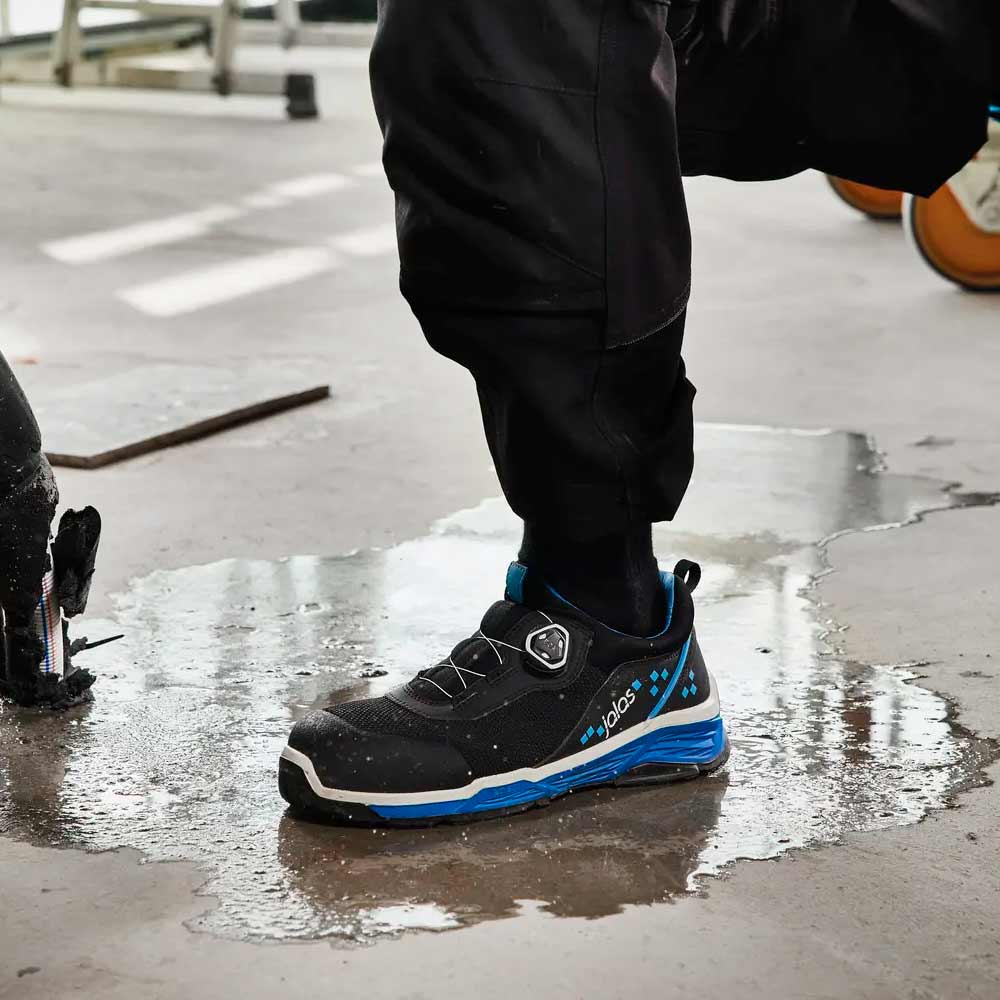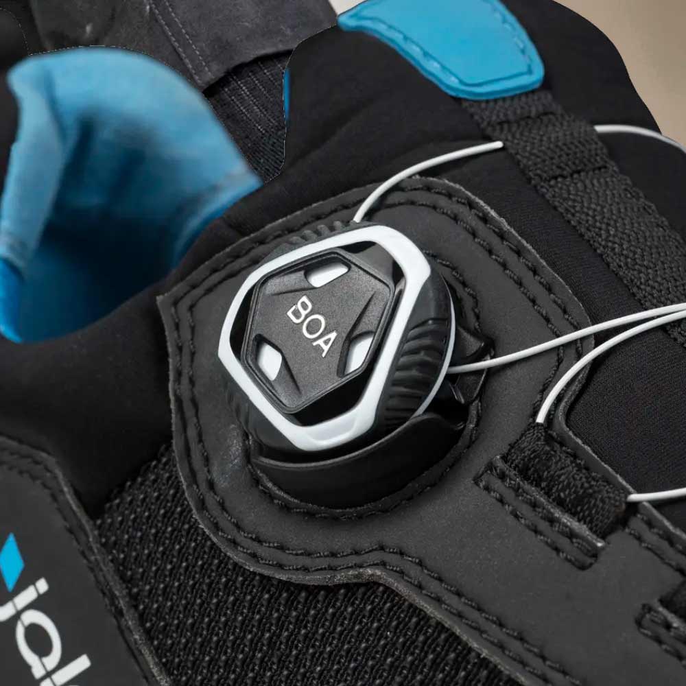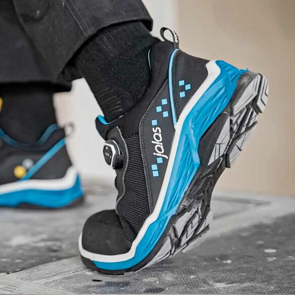 Pehmeä ja vettähylkivä turvajalkine, joka tarjoaa tehokasta suojaa. Parasta pehmeyttä ja käyttömukavuutta vakaan TIO (Three In One) -RPU-kitkapohjan ansiosta, joka estää pitkäaikaisten jalka- ja selkävammojen syntymisen. BOA® jalkineen sivulla mahdollistaa täydellisen istuvuuden, eikä jalkine paina jalkaa työskenneltäessä polviasennossa. Jalkineessa on alumiininen varvassuoja ja pehmeä tekstiilinen naulaanastumissuoja. Uusi Jalas-teknologia, jossa kolme pohjaa yhdessä.