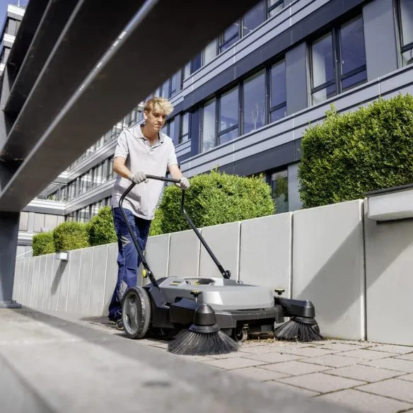 Lakaisukone KM 70/30 C on sisä- ja ulkotilojen puhdistamiseen soveltuva ammattilaisen työkalu, jonka harjat ja imumoottori toimivat 36V akulla. Suuren suodatuspinta-alan tarjoavan laakasuodattimen ja sen puhdistustoiminnon ansiosta tämä malli kykenee poistamaan myös suuremmat pölymäärät ja samalla minimoimaan ympäristöön nousevan pölyn määrän. Kevyesti kulkeva lakaisin mukautuu ketterästi ulkoalueiden ja sisätilojen puhdistamiseen ja mahtuu varastoituna pieneenkin tilaan. Pikkuroskat, lehdet ja hiekoitushiekka saadaan koneen avulla nopeasti ja lähes äänettömästi talteen. Helposti säädettävä pääharja mukautuu nopeasti erilaisille pinnoille ja tarjoaa 480 mm työleveyden. Lakaisin toimii Battery Power+ -sarjan 36V akulla ja laturilla. Ne ovat yhteensopivia sarjan muiden siivouslaitteiden ja ulkotyökalujen kanssa. Akku on irrotettava, joten kahden akun avulla koneella voidaan operoida suuretkin alueet ilman työn keskeytymistä. Tämä versio toimitetaan ilman akkua ja laturia. Suositeltavat varusteet: 7,5 Ah akku (2.445-043.0) ja pikalaturi ( 2.445-045.0). Tällä akulla saavutetaan noin kahden tunnin ajoaika yhdellä latauksella.n ajoaika yhdellä latauksella.n ajoaika yhdellä latauksella.