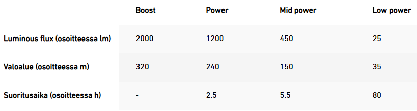 - Intuitiivinen ohjaus: Mode Select Ring nopeaan pääsyyn eri valotiloihin, kuljetuslukkoon ja USB-C-latausporttiin