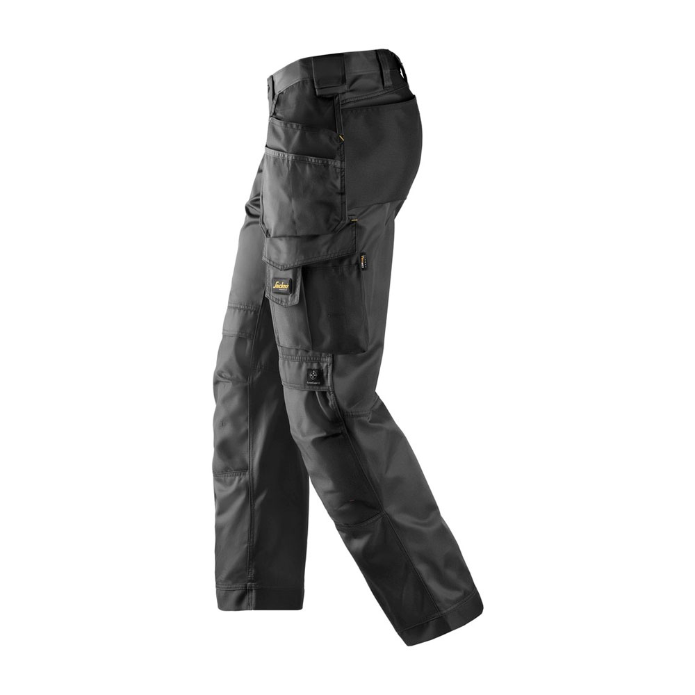 Riipputaskuilla varustetut työhousut parantavat työskentelymukavuutta ja kestävät päivittäisen käytön kulutusta. Kestävästä kankaasta valmistetuissa housuissa on suojausominaisuuksia.