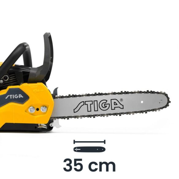 STIGA CS 540 (14″)-moottorisaha 35 cm (14”) laipalla. Voimanlähteenä 38,5 cc (1,6 kW) moottori, mikä tekee sahasta luotettavan ja tehokkaan, silti kevyen. Magnesiumia oleva kampikammio tekee sahasta vankkarakenteisen, luotettavan ja nopeasti jäähtyvän. Öljypumppu on automaattinen ja säädettävä. Sahan huoltaminen onnistuu nopeasti ja helposti sahan useiden ominaisuuksien ansiosta: mm. ilman työkaluja helposti avattava ilmansuodattimen kansi, kahvassa säilytettävä tulppa-/ketjunkiristysavain ja polttoainesäiliön tarkistusikkuna. Ergonominen, soft grip –pinnoitteella oleva kädensija ja jouset, jotka eristävät kahvat moottorin osista, vähentävät tärinää ja parantavat käyttömukavuutta.