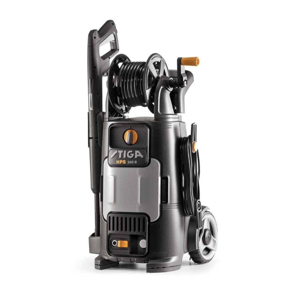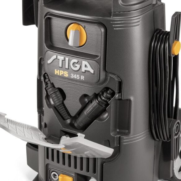 STIGA HPS 345 R on kylmää vettä käyttävä painepesuri, suunniteltu keskikokoisten pintojen puhdistamiseen mukavasti ja helposti. Pesurissa on 2 100 W oikosulkumoottori, joka tuottaa 145 baarin maksimipaineen ja 450 l/h maksimin vesimäärän. Vakiona 9 metriä pitkä korkeapaineletku. Se on kevyt, erittäin vakaa ja liikkuu helposti kahden kumipäällysteisen pyörän ja luistamattoman, soft grip -pinnoitteella olevan teleskooppisen työntöaisan avulla. HPS 345 R -pesurissa on letkukela ja käytännöllinen säilytystila osille ja varusteille. HPS 345 R on ihanteellinen esineiden ja erilaisten pintojen kohtalaisen haastaviin puhdistustöihin. Sillä puhdistaa tehokkaasti mm. puutarhalaitteet, terassit ja portaikot, polkupyörät, moottoripyörät, autot, kivetykset, polut, puiset esineet ja työkalulaatikot.