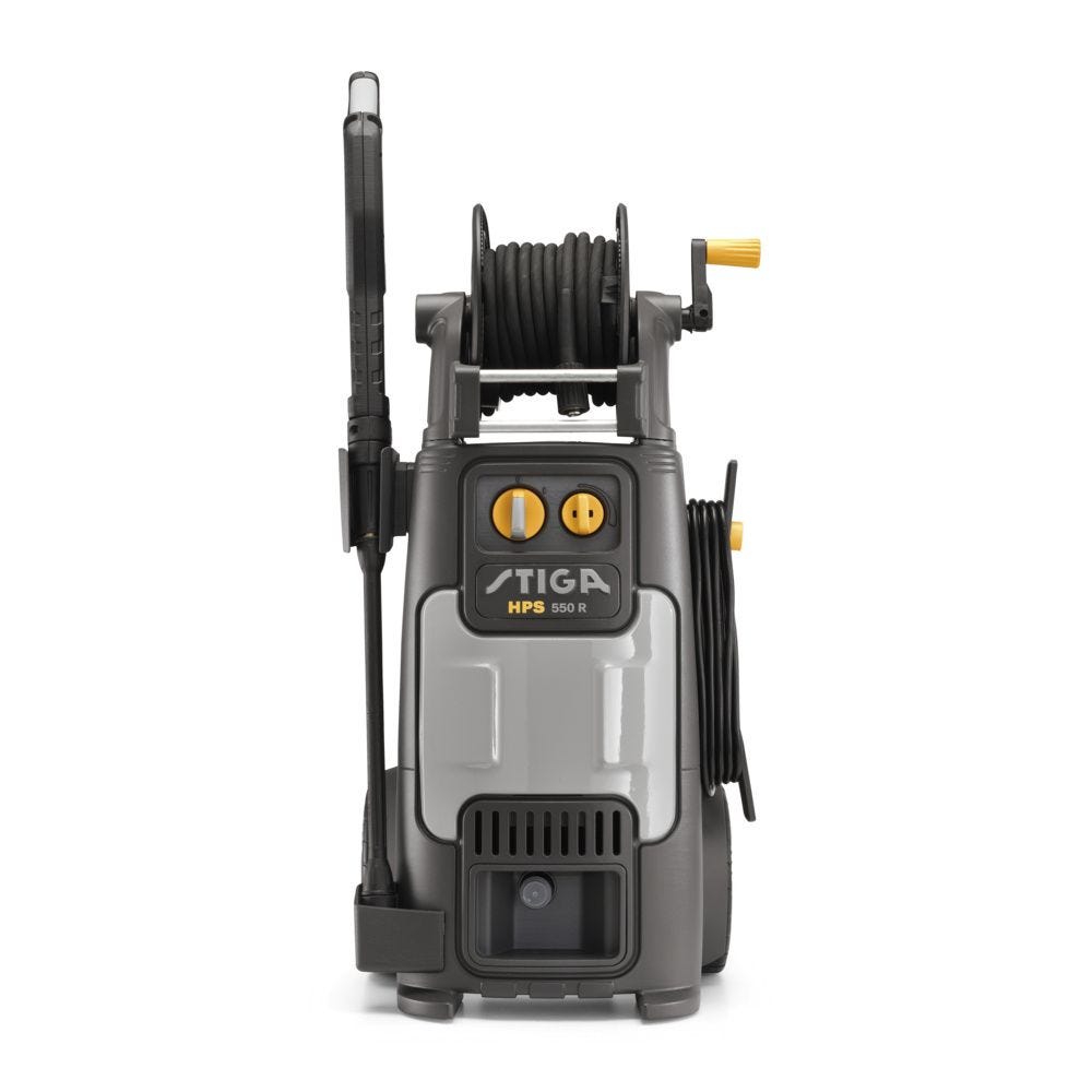 HPS 550 R on kylmää vettä käyttävä painepesuri, joka sopii esineiden ja suurten pintojen puhdistamiseen mahdollisimman mukavasti. HPS 550 R -pesurin voimanlähteenä on 2 500 W sähkömoottori, ja sen maksimipaine on 150 baaria ja maksimi vesimäärä 520 l/h. Vahvistettu korkeapaineletku 10 m, kelataan letkukelaan alumiinisten ohjauskiskojen avulla. Pesuaine annostellaan automaattisesti, sen syöttö laitetaan päälle suihkuputken päässä olevasta säätimestä. Pesuaineen määrää säädetään laitteen etupuolella olevasta nupista. Isot kumipyörät ja teleskooppinen työntöaisa tekevät laitteen siirtämisen puhdistettavan kohteen luokse helpoksi. Säätimet ovat helppokäyttöisiä ja erittäin näkyviä. Innovatiivinen STIGA-lisäkahva mahdollistaa äärimmäisen käyttömukavuuden. Tämä painepesuri soveltuu monenlaisten pintojen, kuten puutarhakoneiden, pihamaan, autojen, pakettiautojen ja uima-altaiden syväpuhdistukseen.