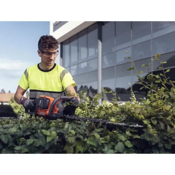 HT 500e on tehokas akkukäyttöinen pensasleikkuri, joka mahdollistaa mukavan leikkuun – vapaana sotkuisista sähköjohdoista ja polttomoottorin pakokaasupäästöistä. Työskentelyaika yhdellä latauksella jopa 50 minuuttia. Sen 58 cm pitkä laserhiottu kaksoisterä leikkaa pensaiden ja pensasaitojen läpi helposti. Ja säilyttääksesi luonnollisen käsivarsien ja ranteiden asennon, voit kääntää kahvaa 180° kolmeen eri asentoon. Helppokäyttöinen ohjauspaneeli tekee laitteen hallinnasta helppoa samalla kun etukahvan turvakytkin yhdessä takaliipasimen kanssa tekevät työskentelystä turvallista. Terän kärjen suojus estää seinien vahingoittumisen. Ja kun puutarhasi on hyvässä kunnossa, voit varastoida pensasleikkurin helposti ripustusaukosta.