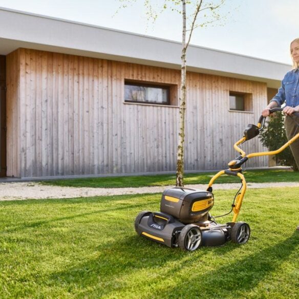Multiclip 747e V -leikkurilla voit hoitaa suuremmat nurmikot omalla ajallasi helppokäyttöisen näppäimistön, ekotilan ja kuuden eri nopeuden ansiosta. Multiclip 747e V saa virtansa kahdesta 48 V 7,5 Ah:n akusta ja mukana toimitetusta laturista, ja sen voimanlähteenä on erittäin tehokas, energiaa säästävä 1,5 kW:n harjaton moottori. Multiclip 747e V pystyy leikkaamaan jopa 2000 m2 75 minuutissa yhdellä latauksella. Joustavuus ja mukavuus ovat myös tämän koneen tärkeitä ominaisuuksia. Voit helposti säätää pehmeäkahvaisen ohjaustangon oikeaan korkeuteen ja asentoon tukevien nokkalukkojen avulla. Jos haluat täydellisen leikkauksen kaikkina vuodenaikoina, säädä Multiclip 747e V:tä vain viidelle eri korkeudelle. Vahva muovinen etuosa suojaa tätä itseliikkuvaa ruohonleikkuria iskuilta ja kolhuilta. Kun olet valmis, taita ohjaustanko vain eteenpäin ja säilytä kone helposti pois.